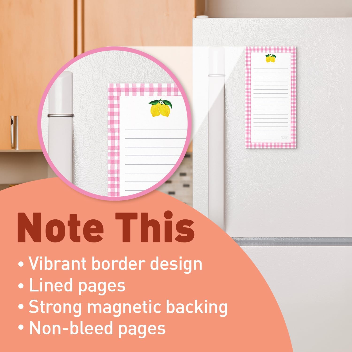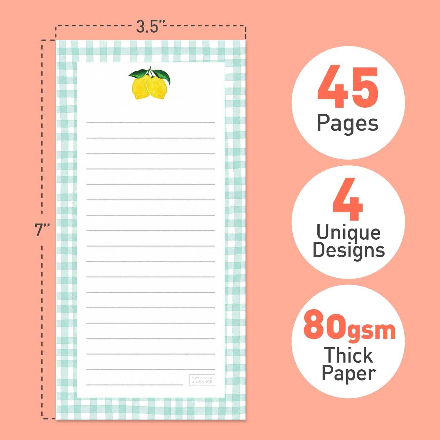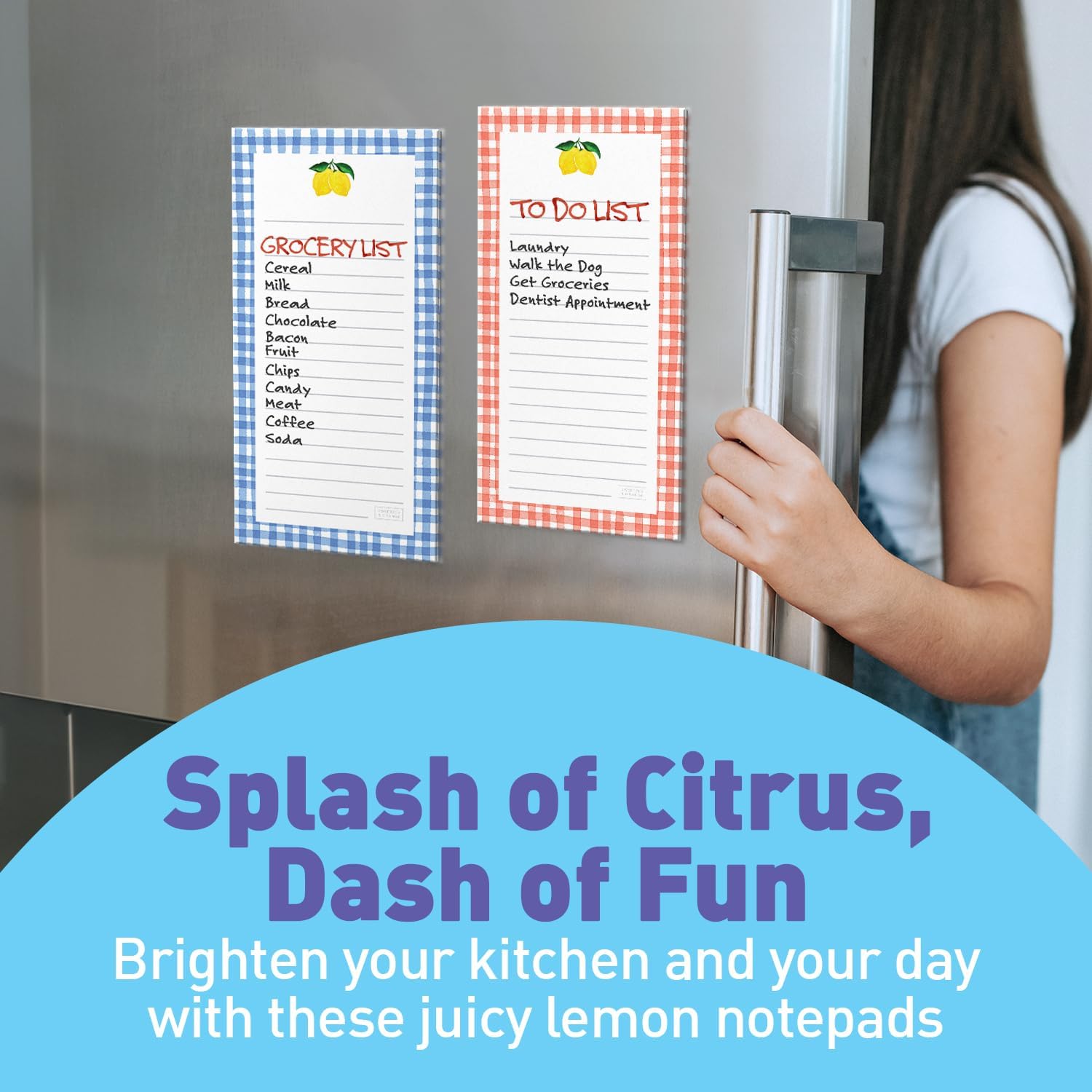 4 Designs Bursting with Juicy Citrus –– Why settle for the same old boring shopping list notepad? Add a pop of fruity goodness to your blank fridge and inject some fun into your every day with lemon decor for kitchen notepad patterns. Each set features 4 unique shopping list notepads designs that bring some personality to the heart of your kitchen
