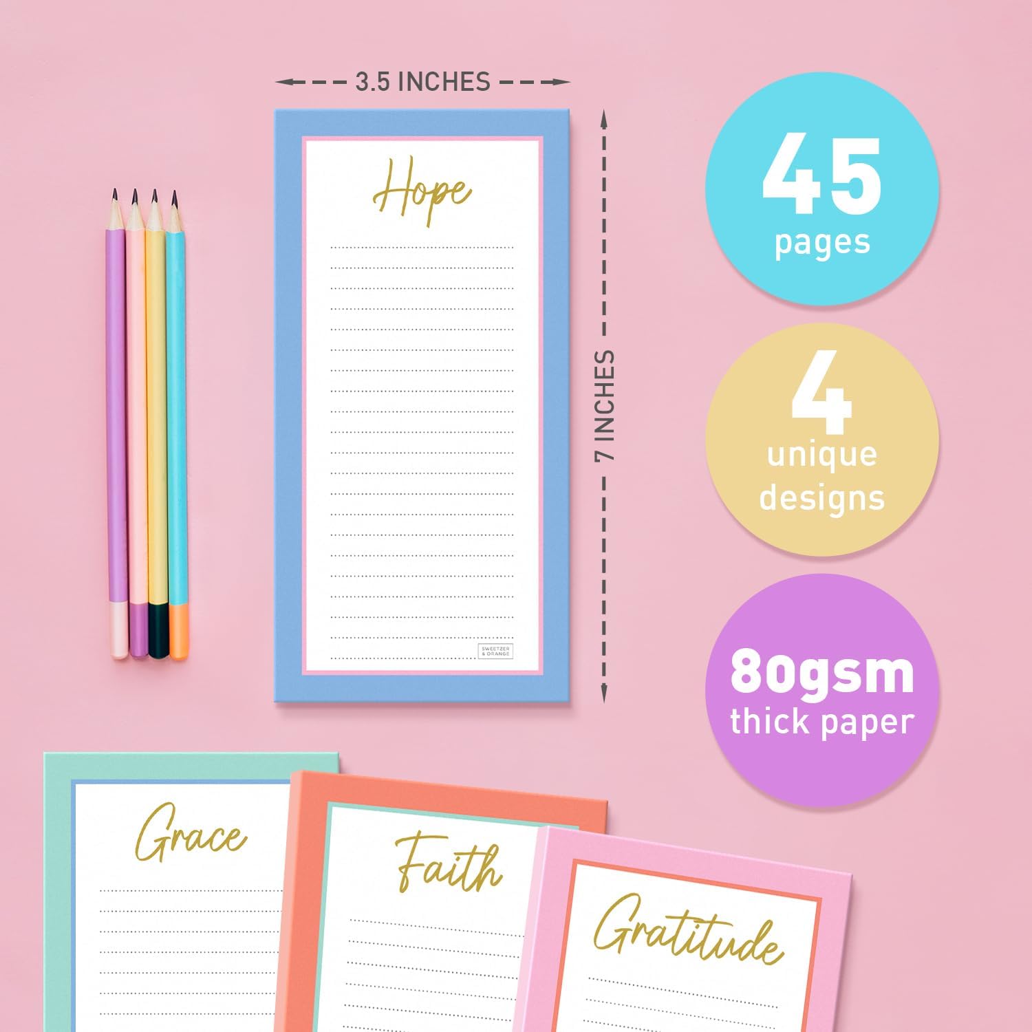 4 Designs Bursting with Hope –– Why settle for the same old boring shopping list notepad? Add some inspiration to your blank fridge and inject some gratitude into your everyday life with these inspirational note pads. Each set features 4 unique shopping list notepads designs that bring some personality to the heart of your kitchen