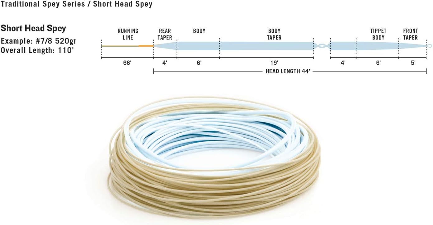 An easy casting traditional style spey line design with a short head, and interchangeable tip versatility