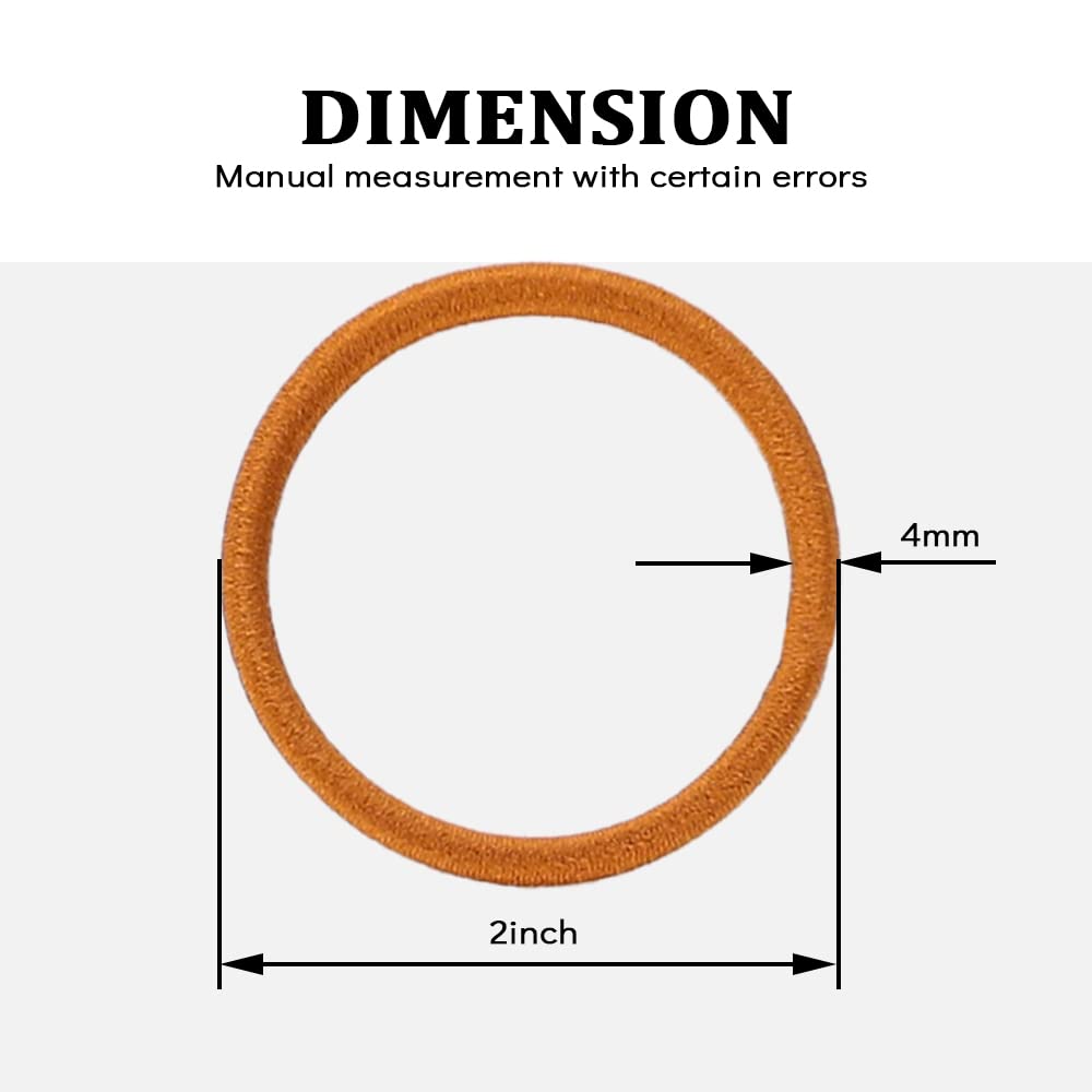 1. 50pcs Colorful Hair Elastics, Hair Ties is 4 mm in thickness, 2” in diameter.