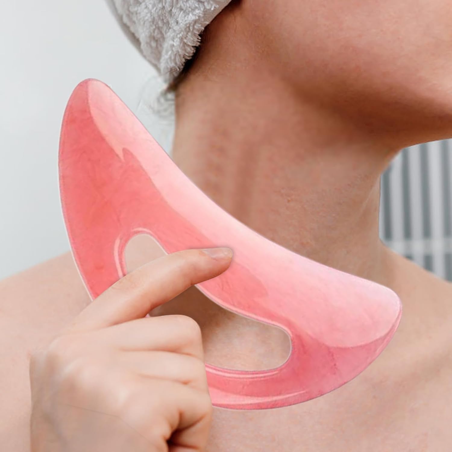 Regular massage with the body scraper tool helps refine jawline contours and improve skin firmness for a defined facial profile, promoting natural beauty through consistent use
