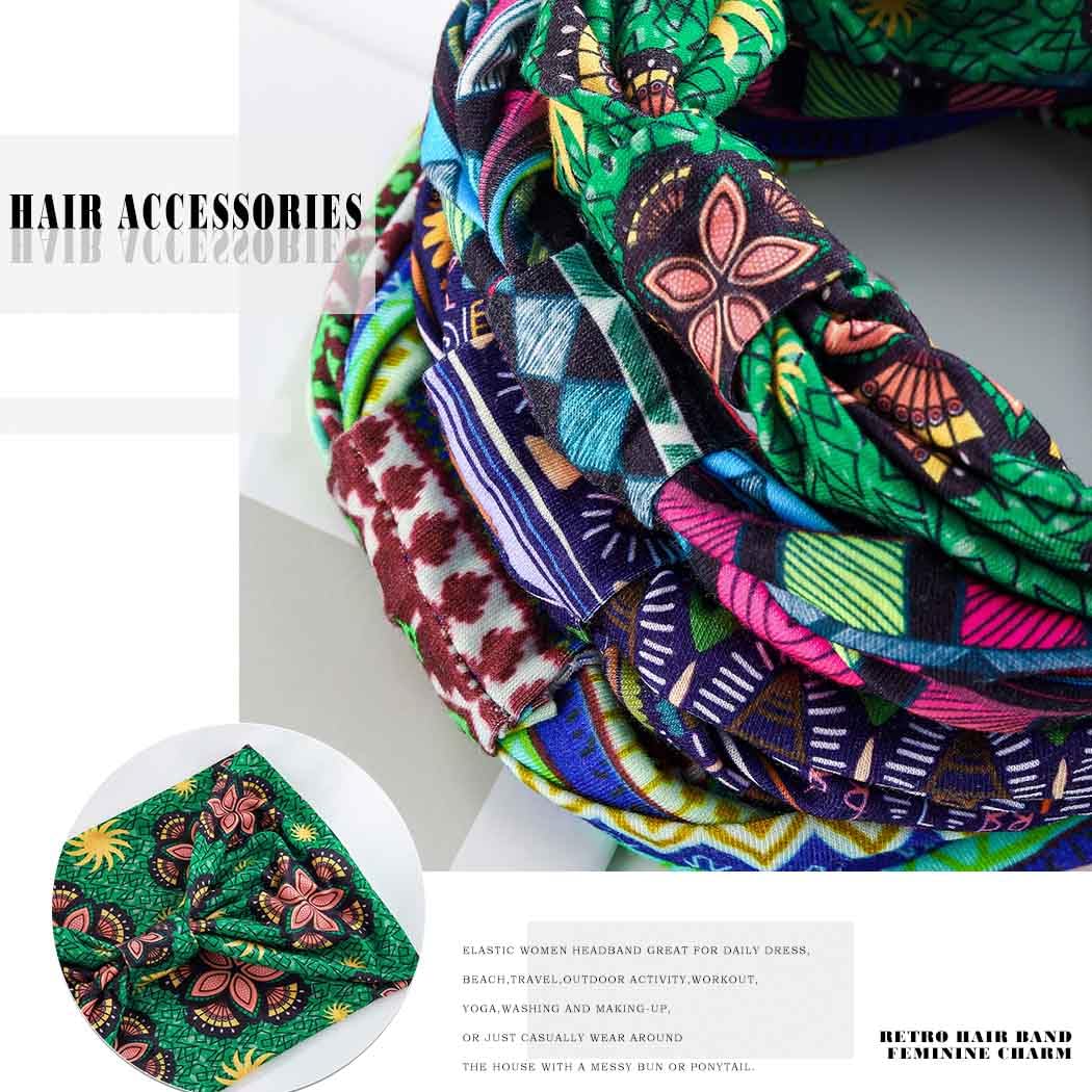 African Headbands Boho Knotted Hairbands Stretch Wide Head Wraps Elastic Yoga Turban Hair Scarfs Workout Printed Hair Accessories for Women Pack of 4 (Style G)
