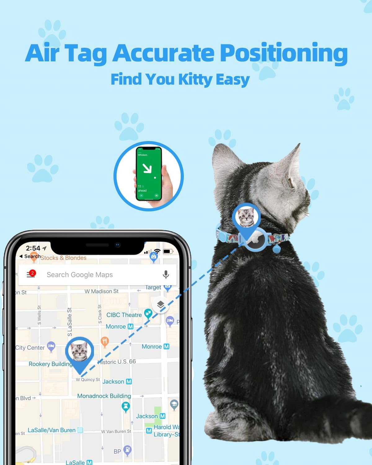 SMART TRACKING FOR FELINE SAFETY: Our cat collars, specially designed for Apple AirTag, provide a lightweight and secure solution for keeping tabs on your furry friends. With the airtag securely enclosed in a waterproof and shockproof case, your cat’s adventures are tracked seamlessly.