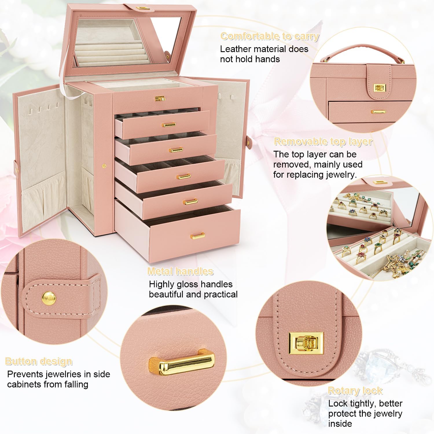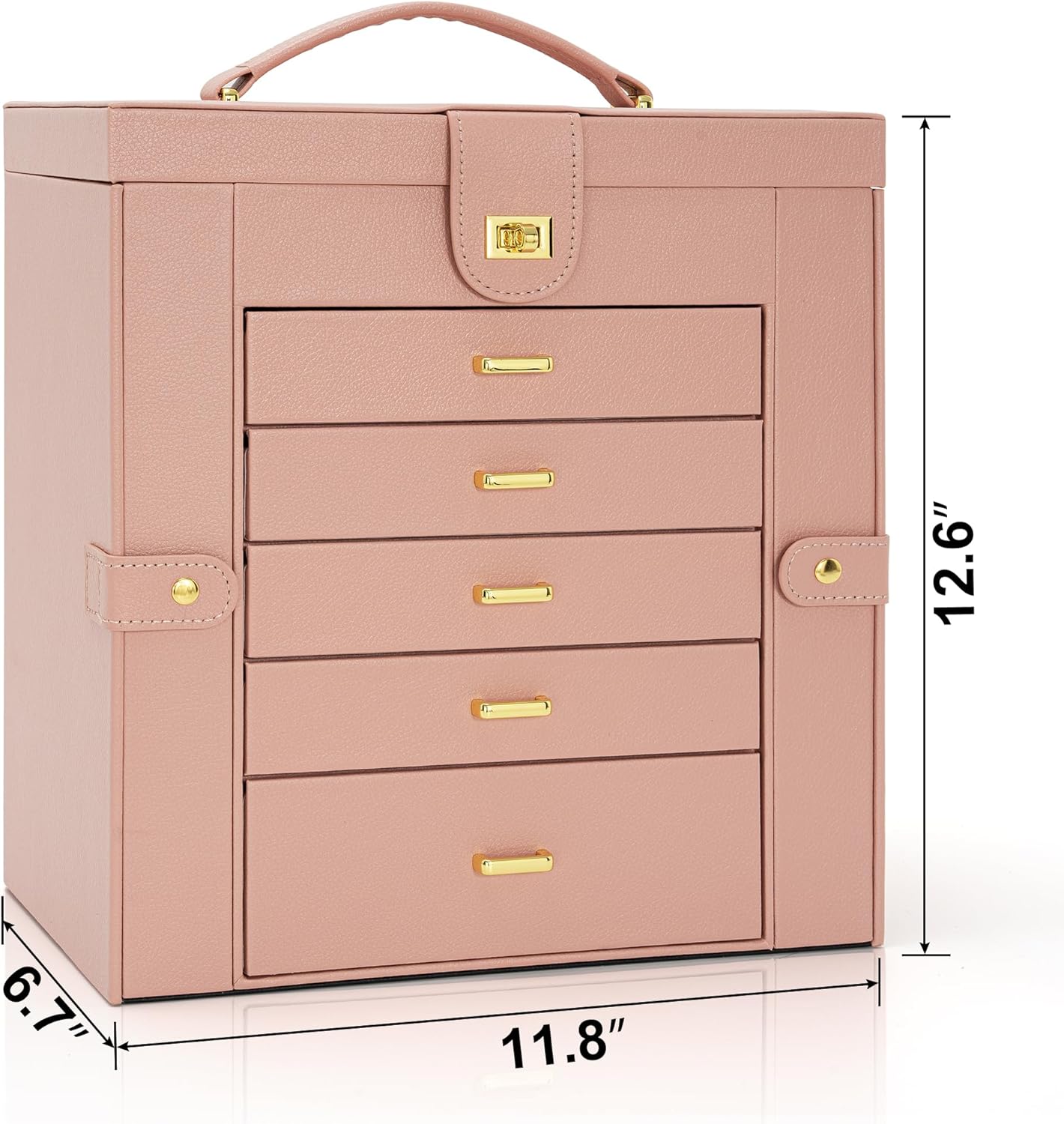 AKOZLIN Extra Large 6-Tier Jewelry Box Organizer Functional Huge 5 Drawers Leather Jewelry Storage Case