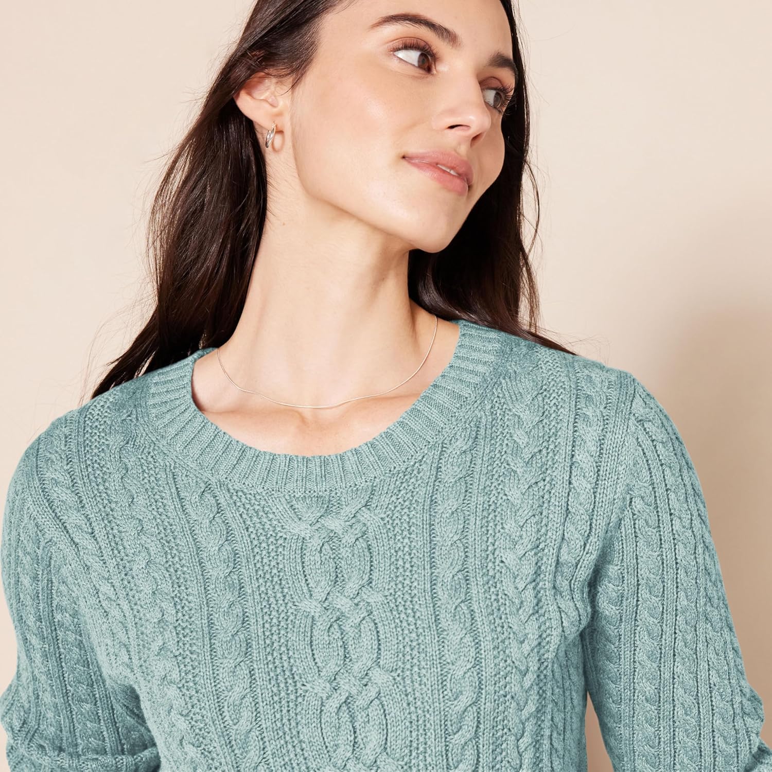 Amazon Essentials Women’s Soft Fisherman Cable Long-Sleeve Crewneck Sweater (Available in Plus Size)