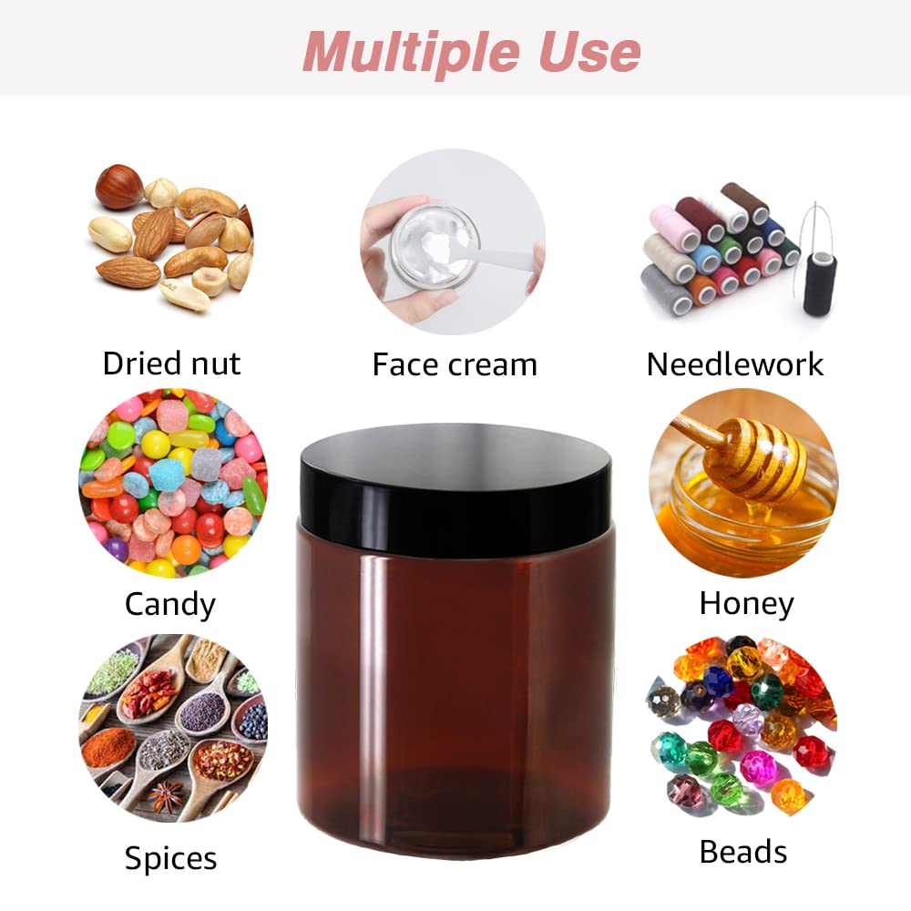 AMORIX 8oz Amber Plastic Jars with Lids 8 oz Plastic Containers with Lids + 20g Sample Containers (Set of 24) Airtight Container for Lip Scrub, Body Butters, Cream, Slime, Craft Storage