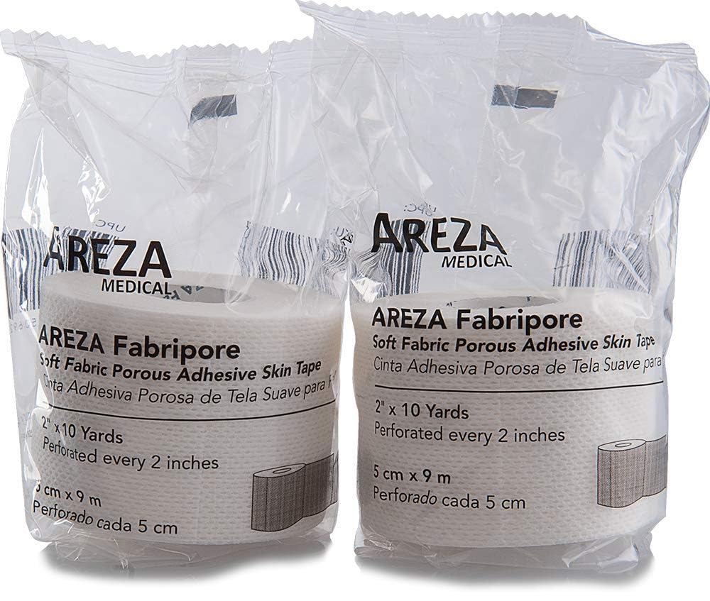 Areza Medical Surgical Tape – Porous Skin Soft Fabric Cloth Adhesive Tape – Fabripore – 2″ x 10 yds. (5 cm x 9 m) – 2 Rolls per Box – FSA/HSA Approved