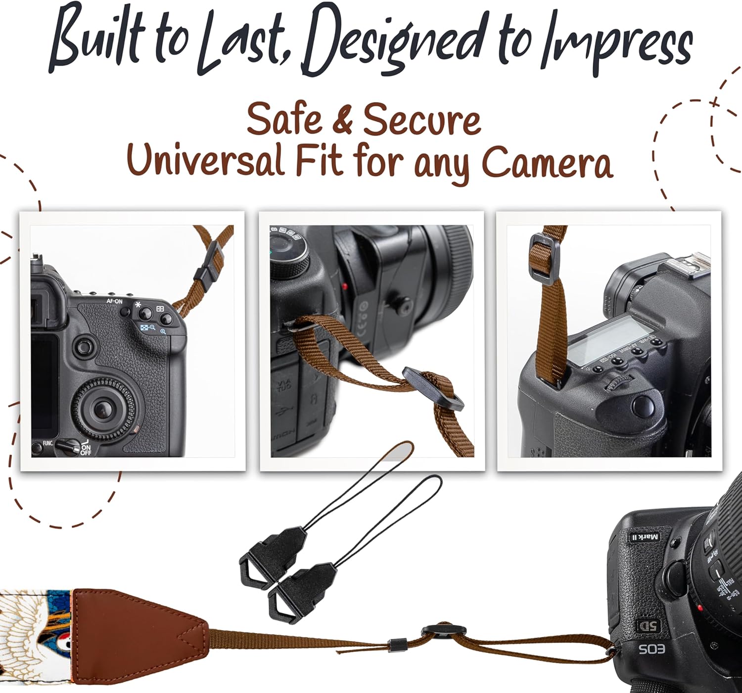 UNIVERSAL APPLICATION: Whether you use a DSLR or SLR camera, our camera strap is designed to provide you with the same performance, reliability and comfort with any camera you can think of. compatible with all popular camera brands DSLR / SLR Cameras & camcorder strap