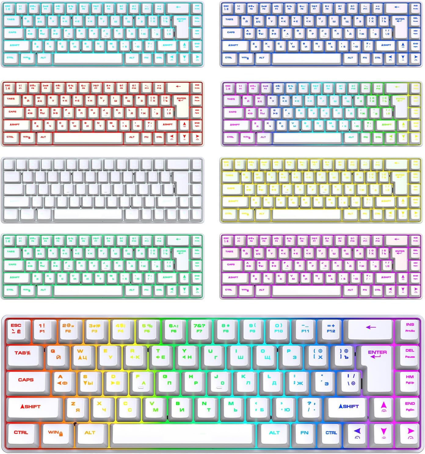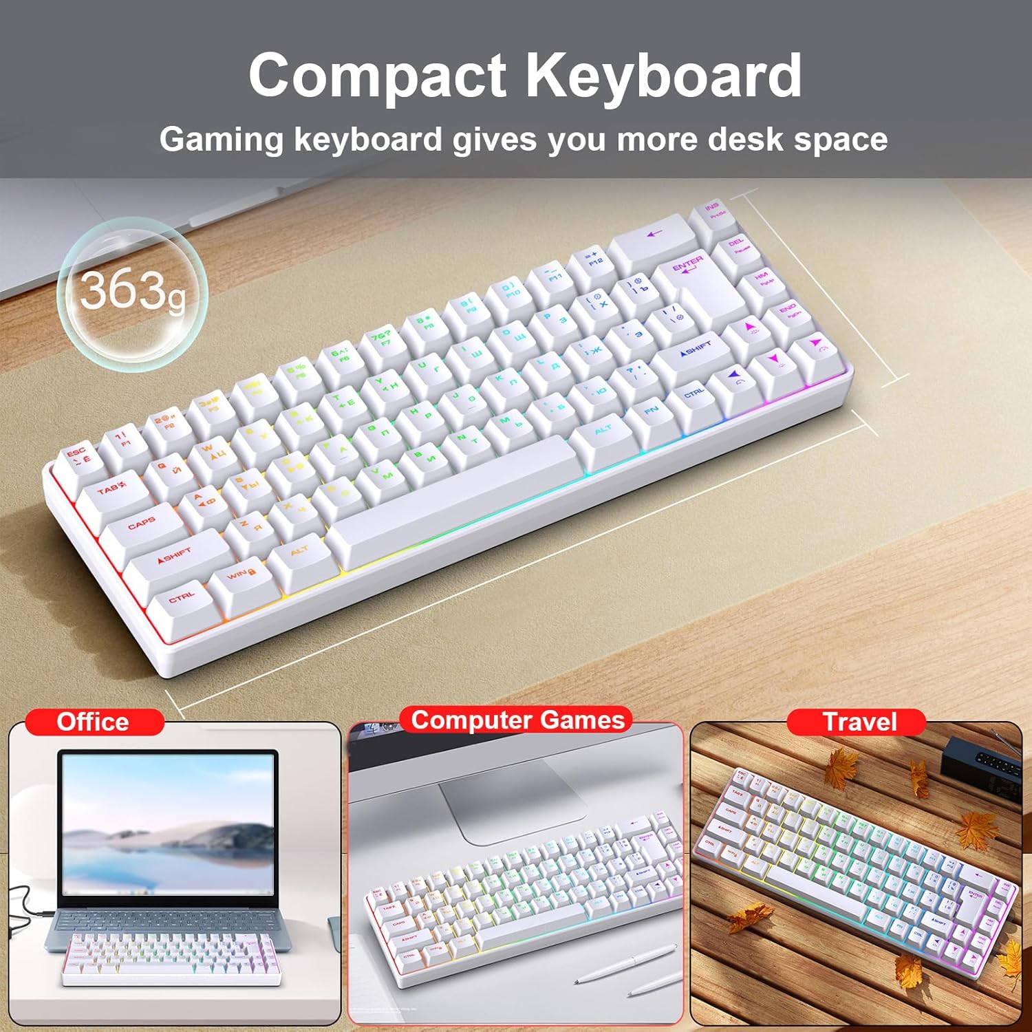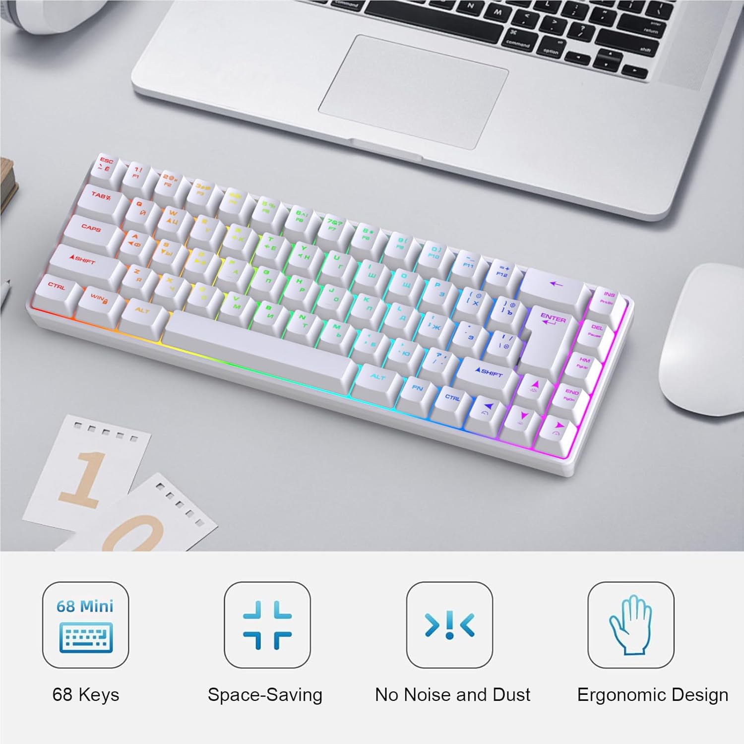 Asixxsix Mechanical Gaming Keyboard, 68 Keys Russian English Dual Language Keyboard Built in Light Effects, RGB Backlit Hot Swappable Mechanical for Computer PC Tablet (White)