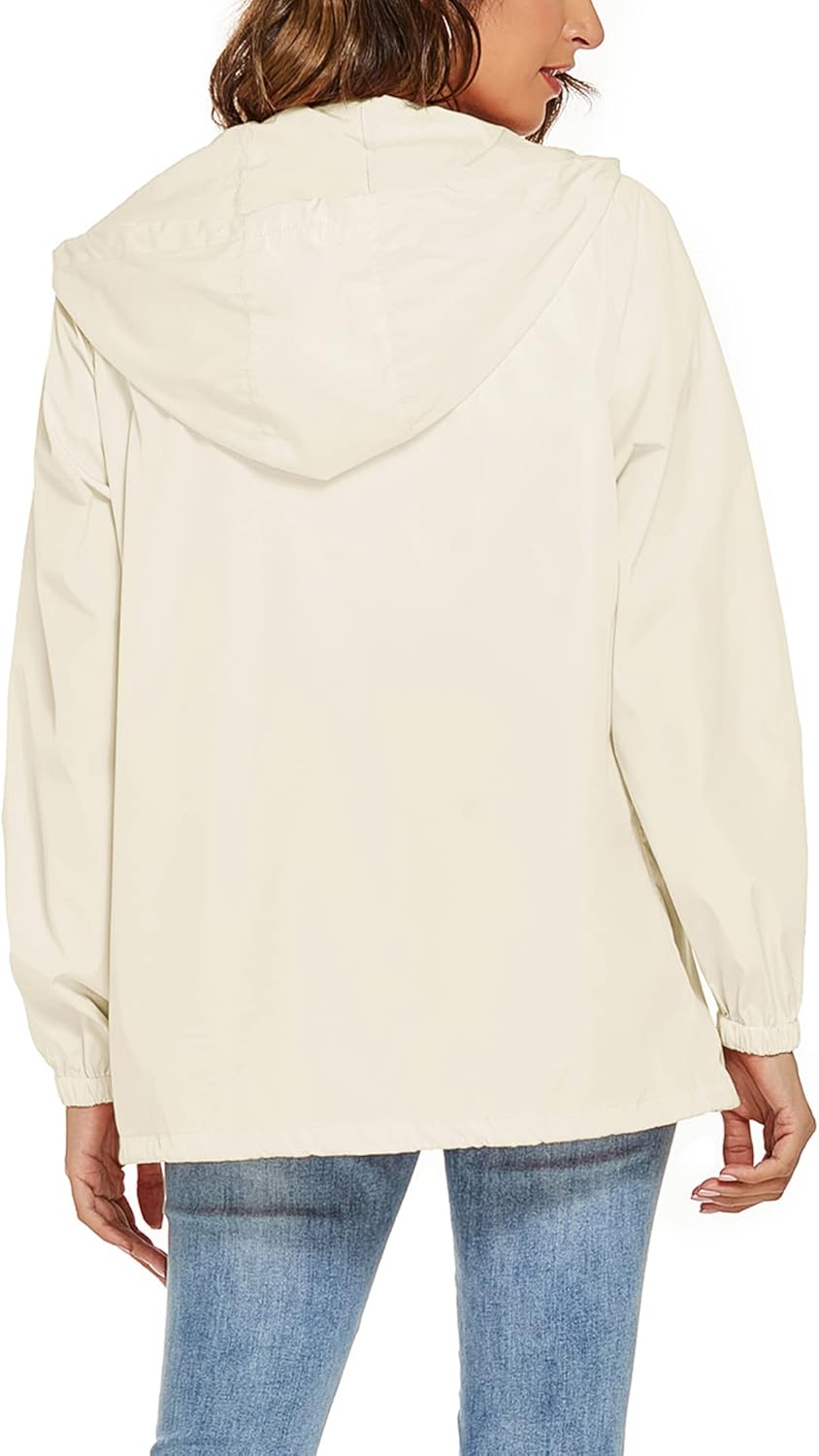 Avoogue Womens Waterproof Raincoat Lightweight Breathable Rain Jacket Hooded Rain Coat Outdoor Active Windbreaker with Pocket