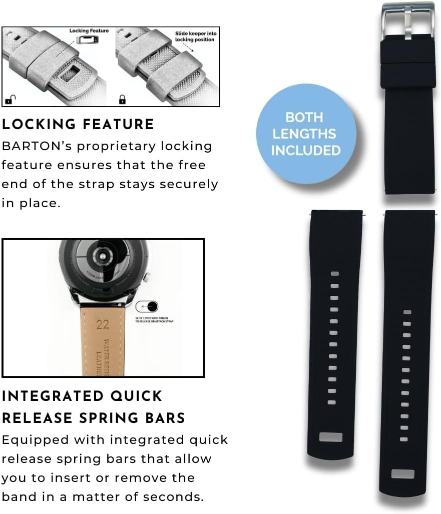 BARTON Elite Silicone Watch Bands – Quick Release – Choose Strap Color & Buckle Color (Stainless Steel, Black PVD or Gunmetal Grey) – 18mm, 20mm, 22mm & 24mm Watch Straps