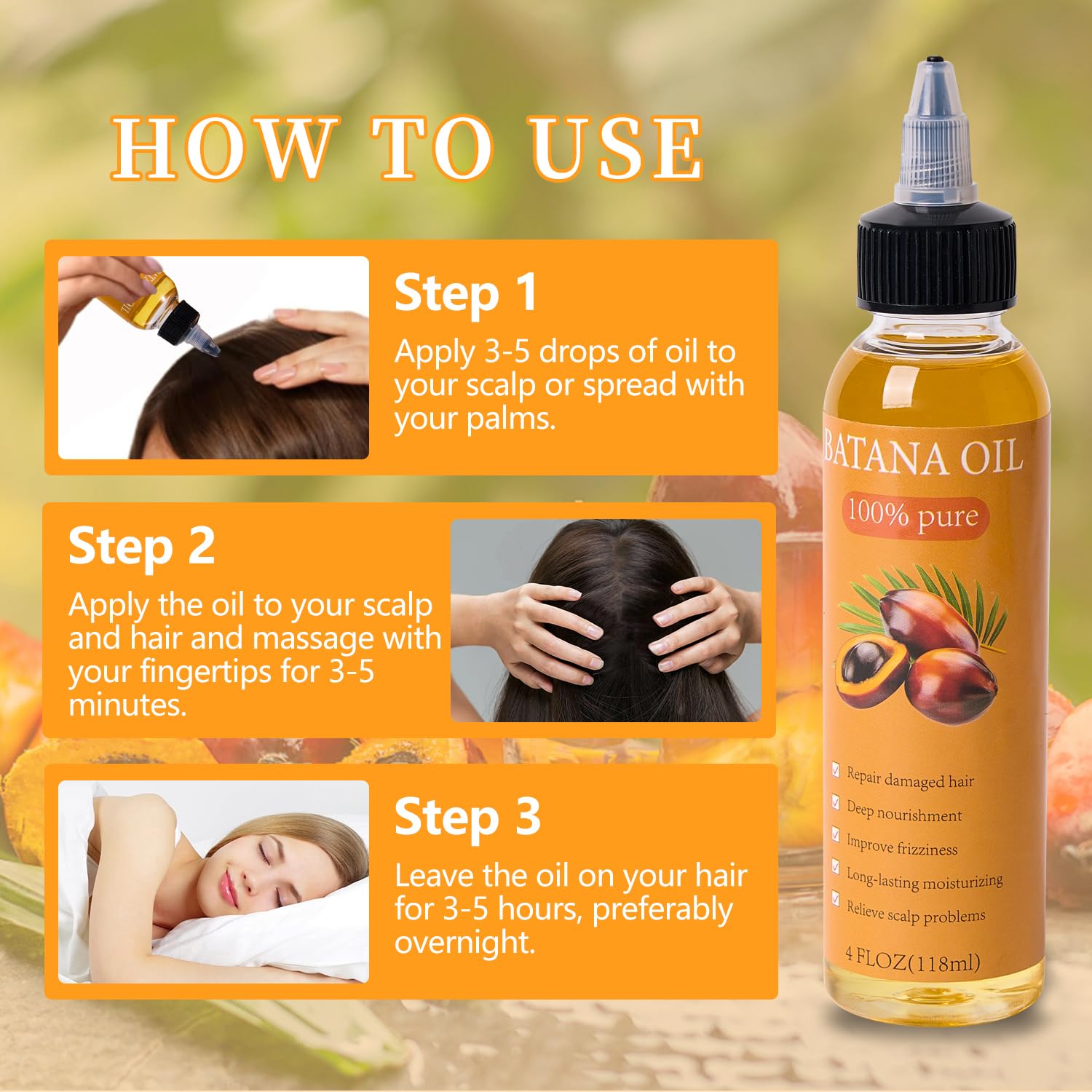 100% Natural Formula: Batana hair oil is extracted from the nuts of Honduran American palm trees through cold chain, maximizing the natural benefits of the fruit – promoting hair growth, preventing hair loss, repairing damaged hair, improving frizzy split ends, long-term moisturizing, and relieving scalp problems.