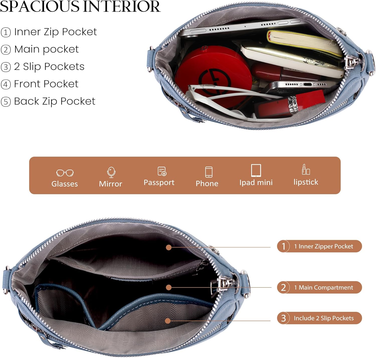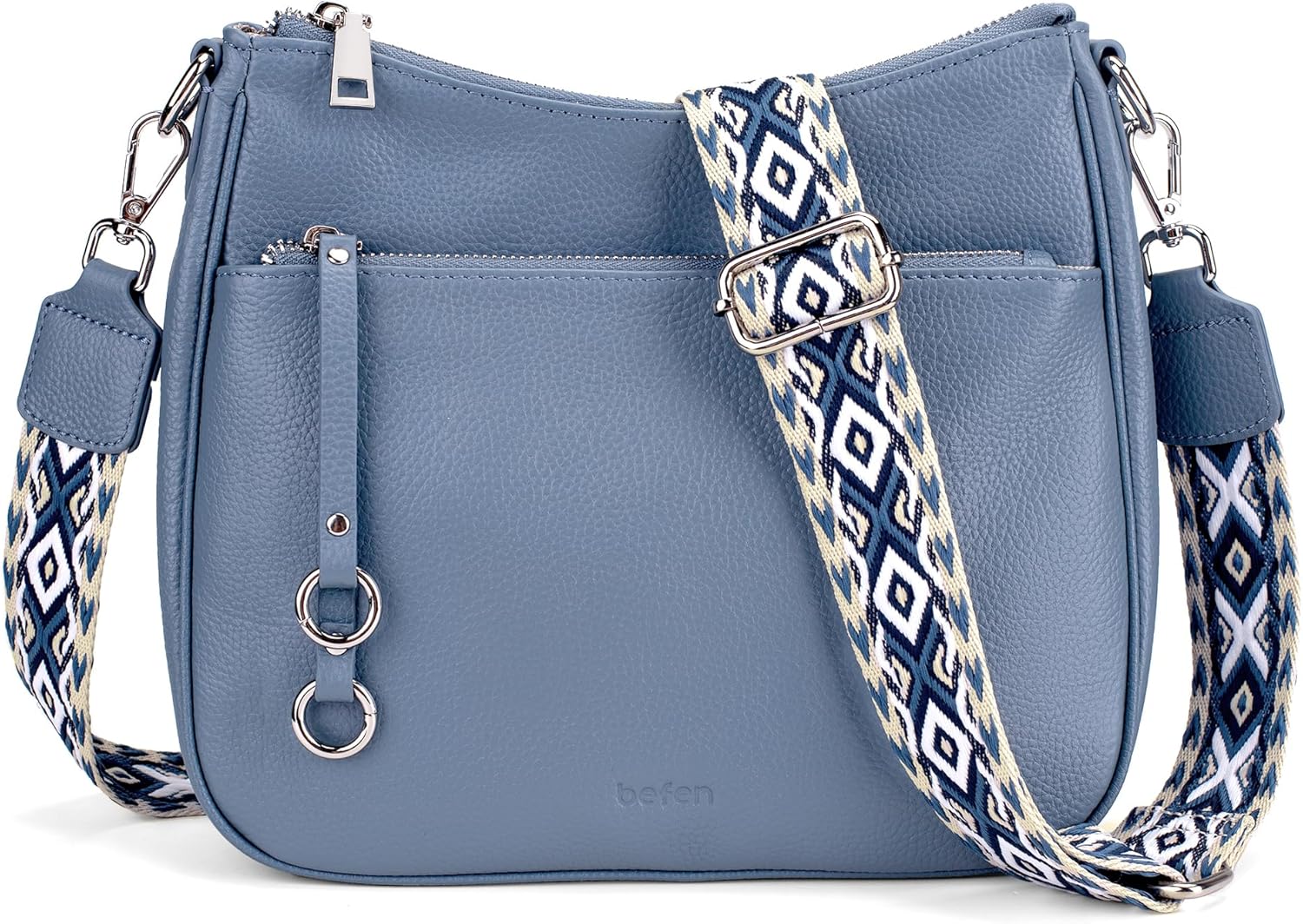 befen Genuine Leather Crossbody Bags for Women Travel Hobo Bags for Women with Adjustable Shoulder Guitar Strap