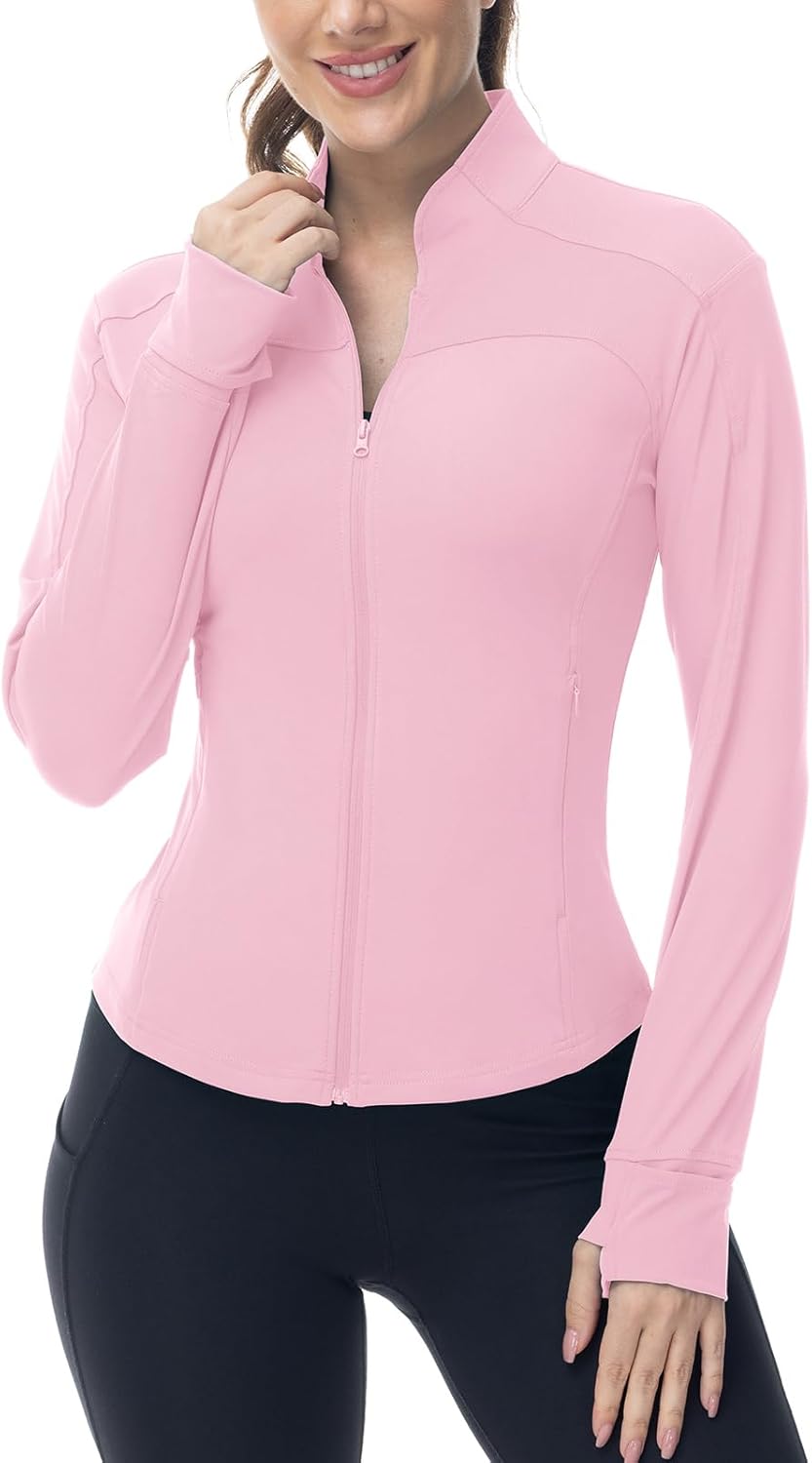 BGOWATU Women’s Workout Jacket Lightweight Zip up Running Athletic Jackets with Thumb Holes
