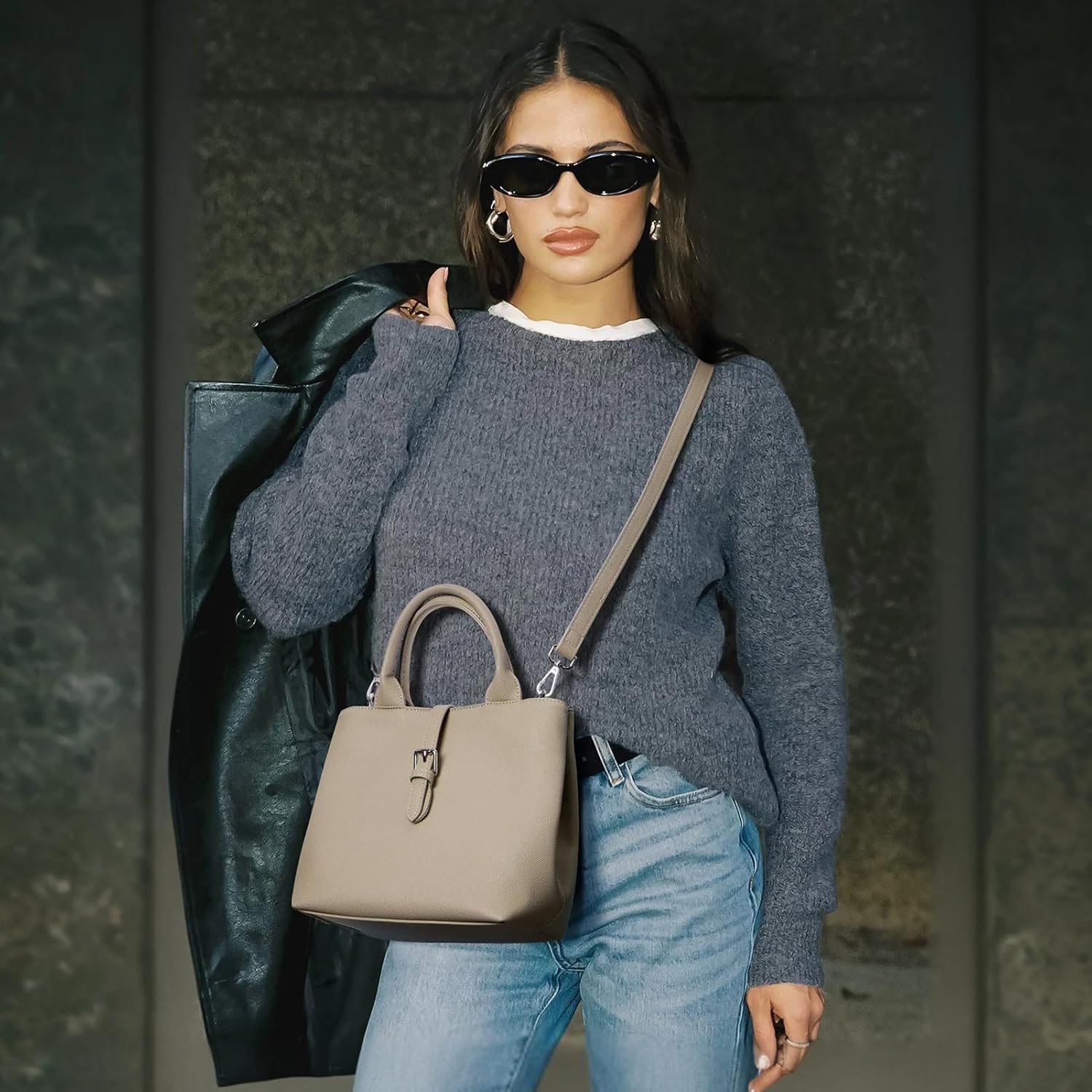 BOSTANTEN Satchel Bag for Women- Adjustable Shape, 3-Way Carry Convertible Vegan Leather Tote for Work Travel