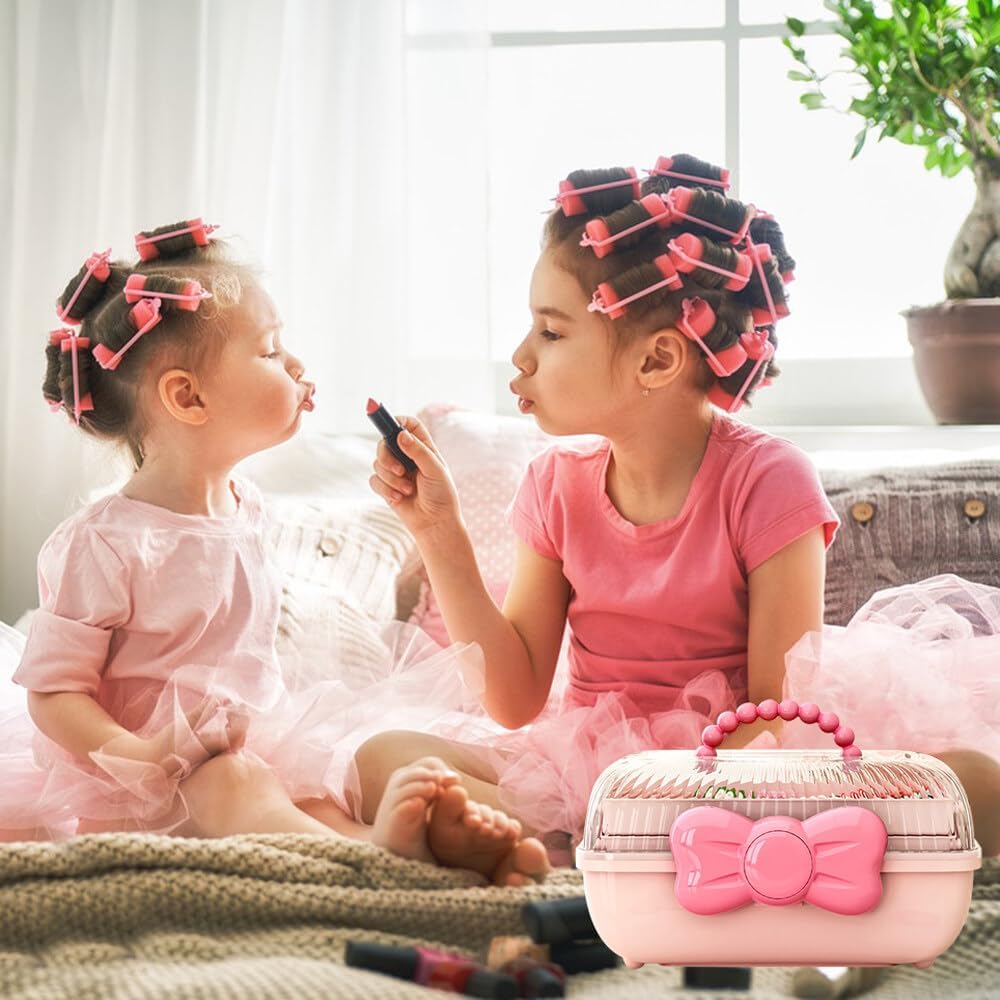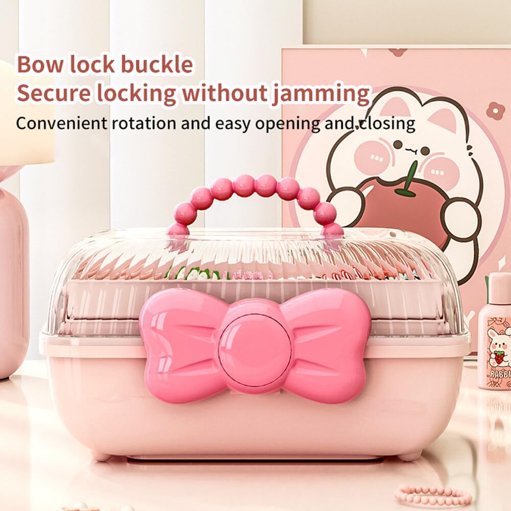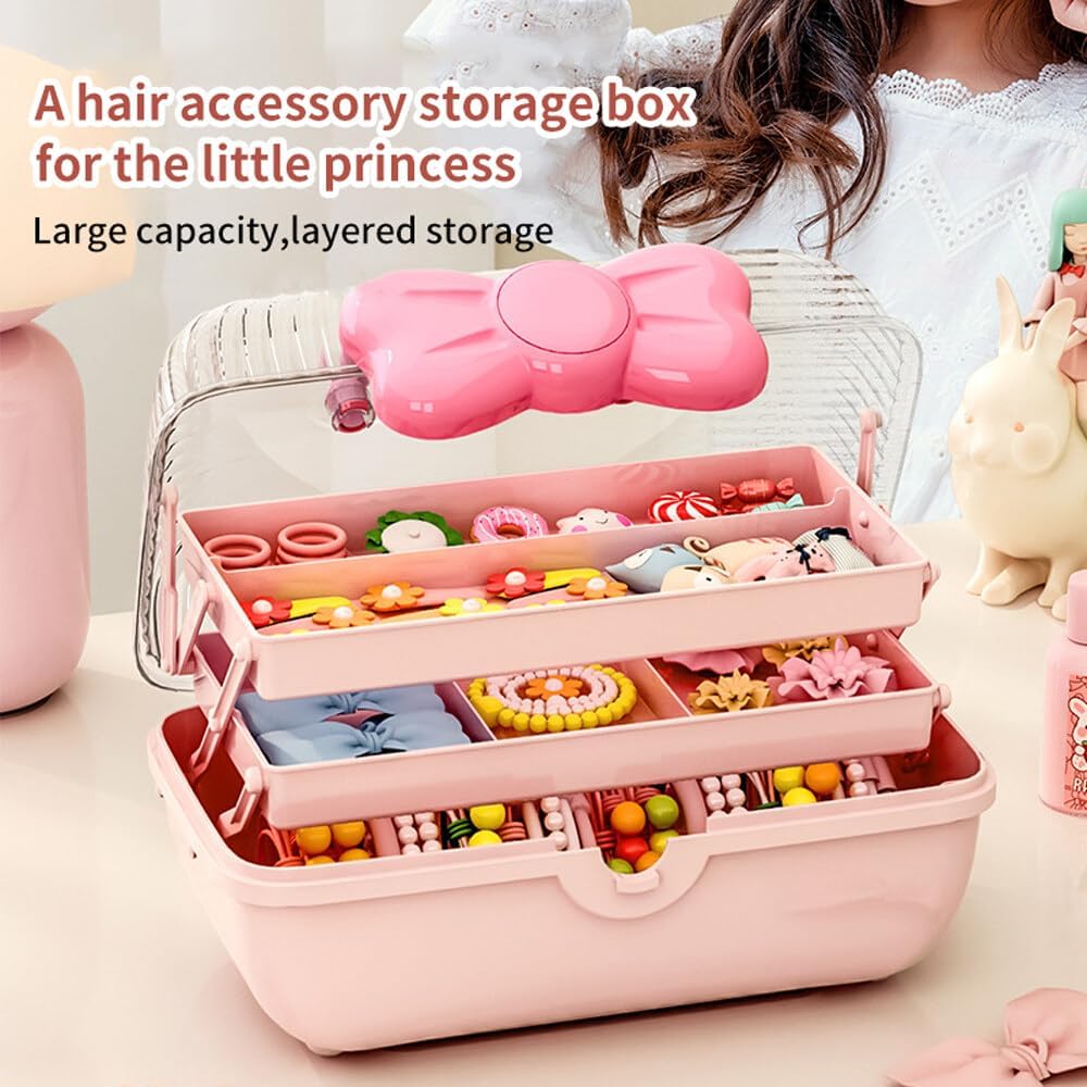 Bow Knot Hair Accessories Organizer Box Cute Dust Proof Childrens Jewelry Storage Box 3 Layers Plastic Storage Box for Hair Clips,Headbands,Hair Bands,Jewelry,Etc