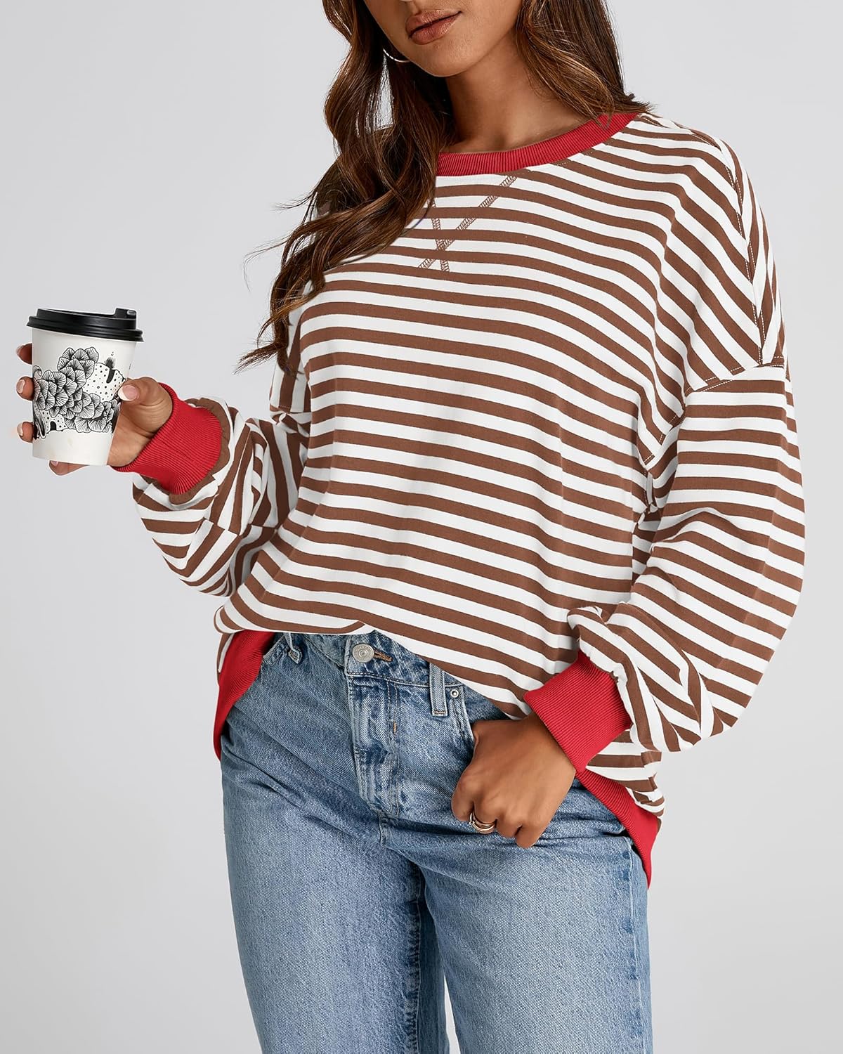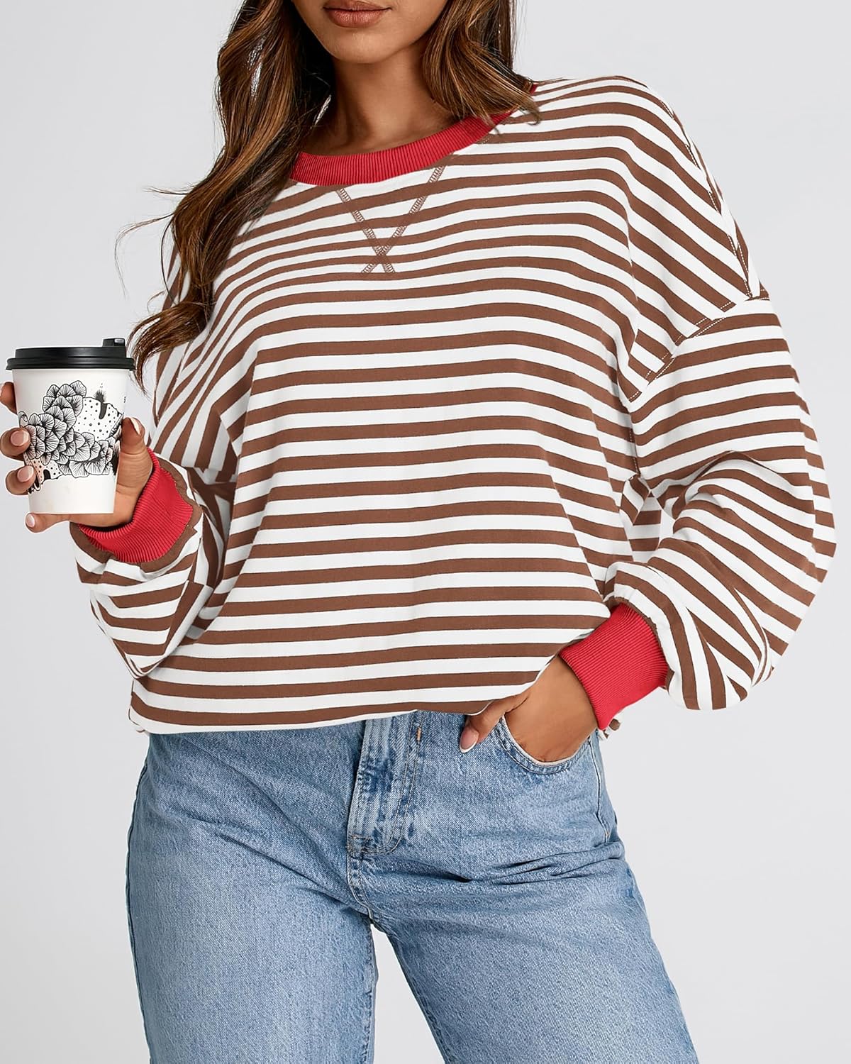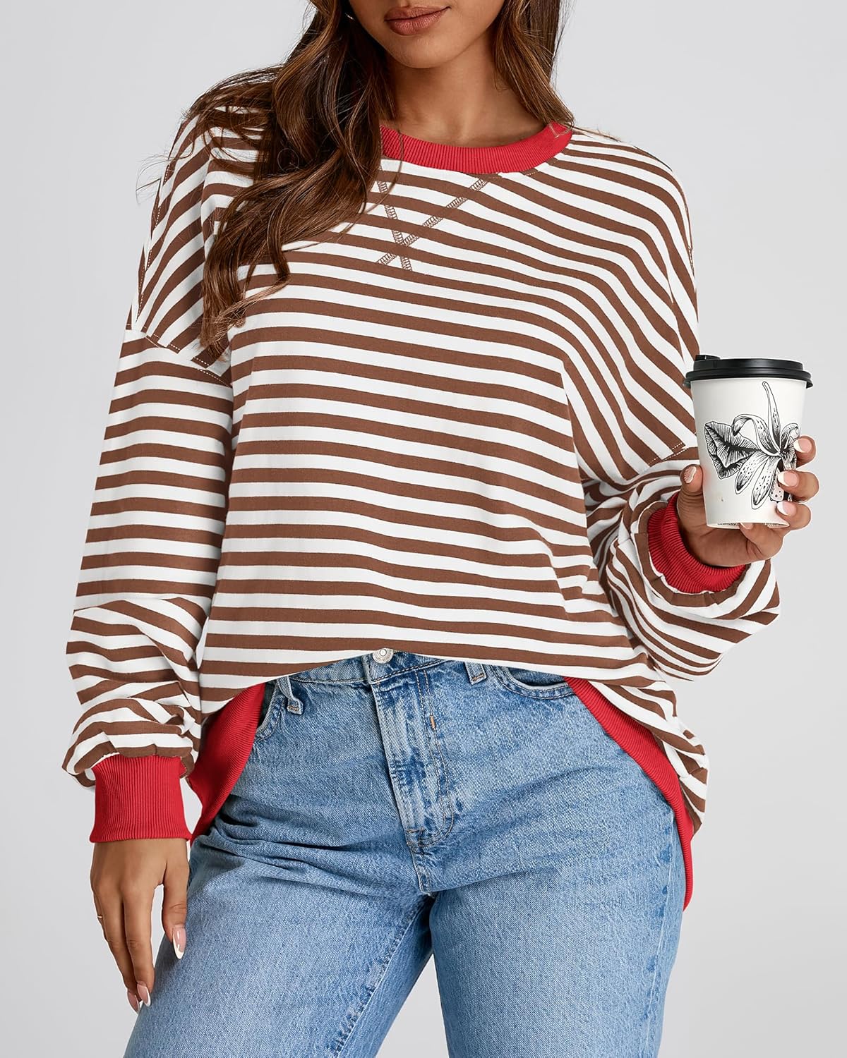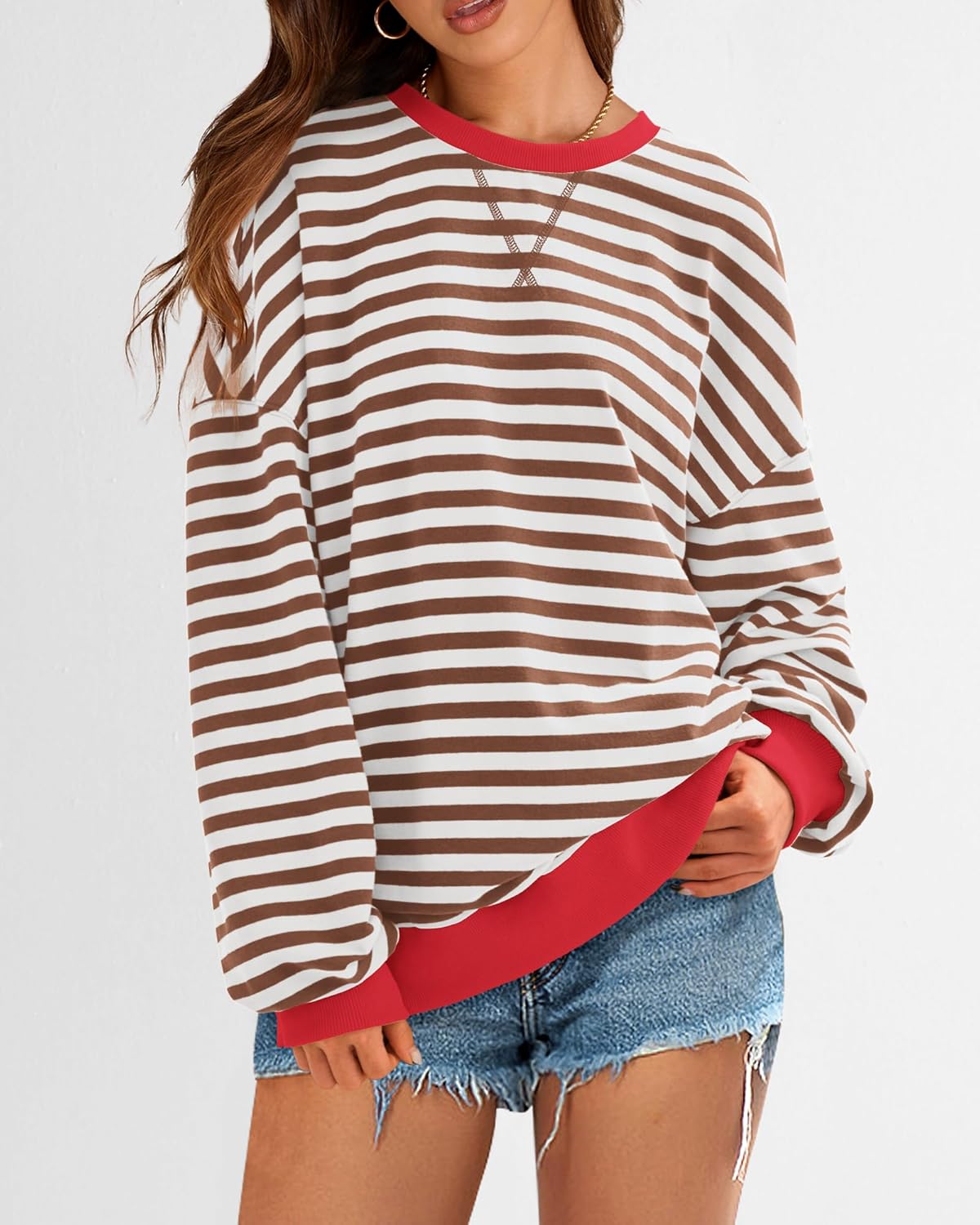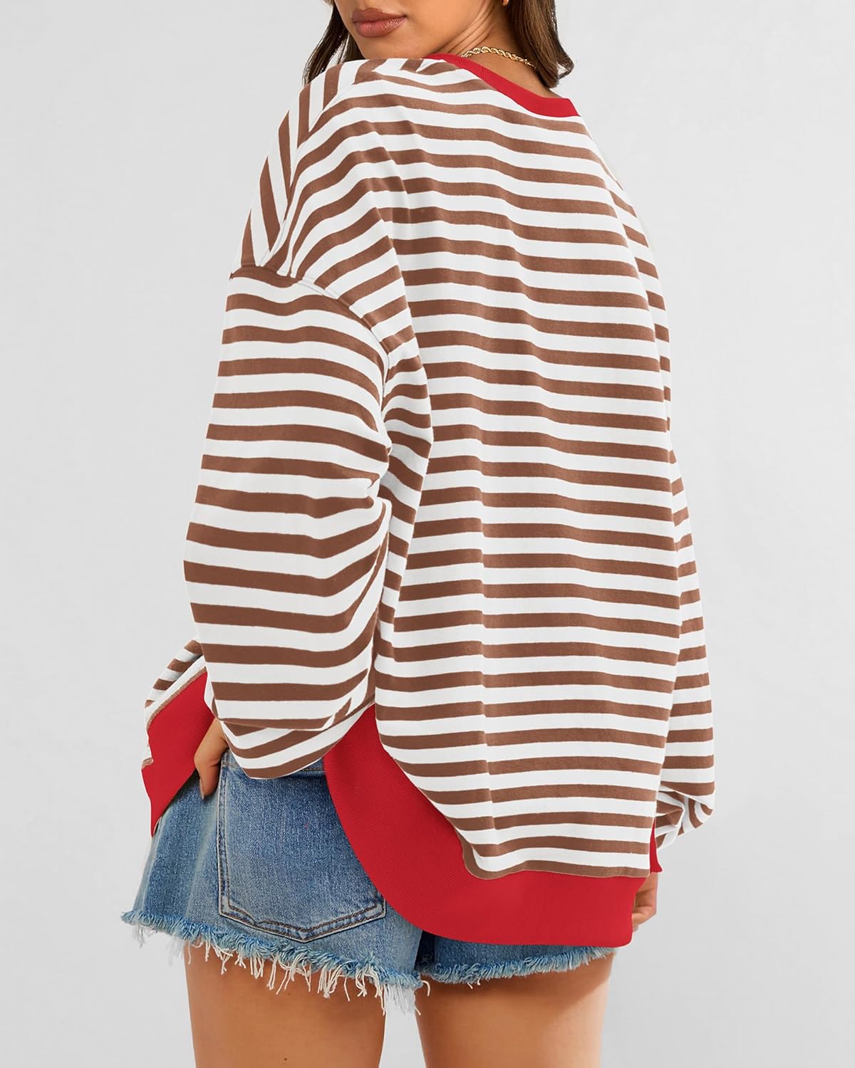 BTFBM Oversized Striped Sweatshirt Long Sleeve Top