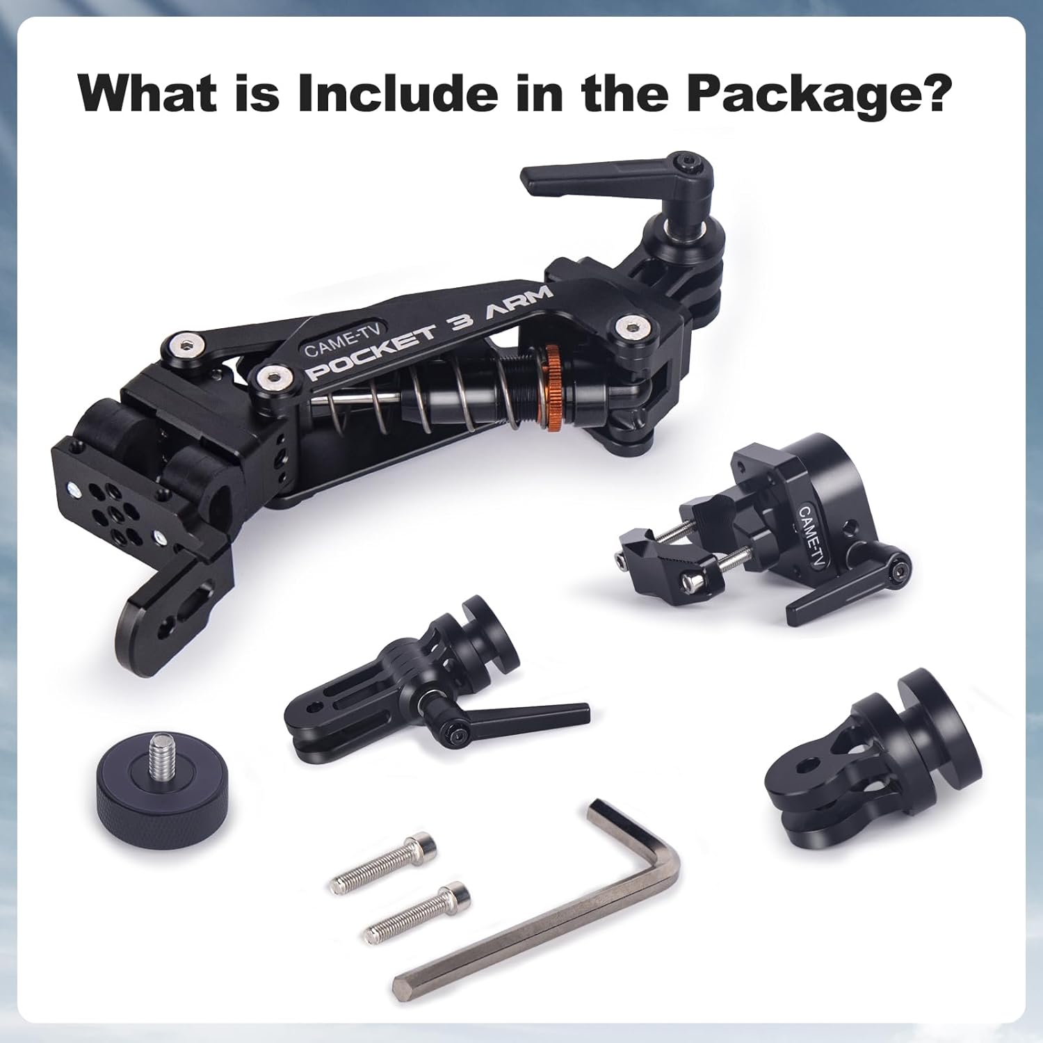 Widely Compatible Devices:CAME-TV PK04 Motorcycle Action Camera Mount Shock Absorber Arm is exquisitely designed with a pipe clamp /a standard 1/4”screw mount, making it easy to install a variety of lightweight camera equipment (compatible with DJI Osmo POCKET 2, POCKET 3, insta360 cameras, smartphones and others Action camera)