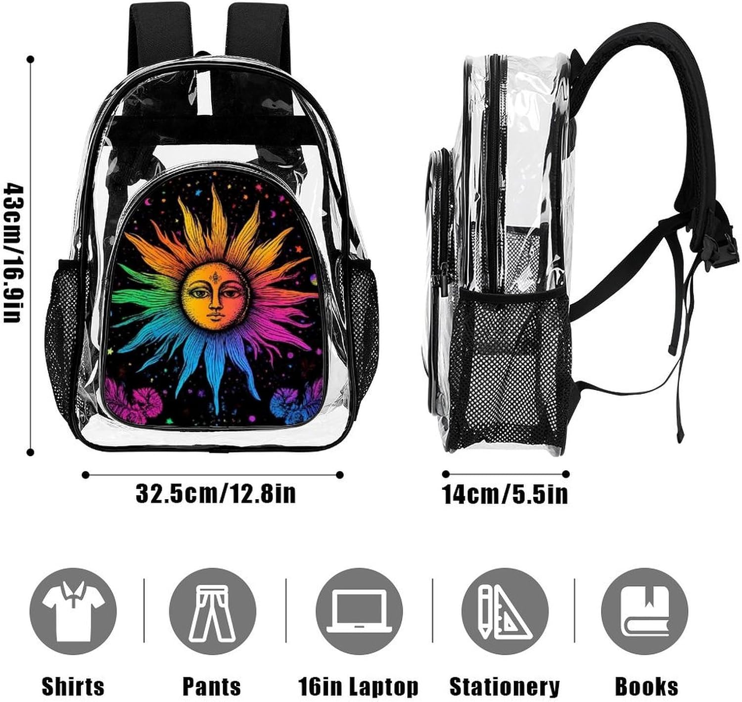 Be the first to review “Clear Backpack Trippy Sun And Moon Neon Art (2) Heavy Duty PVC Transparent Backpack Travel Laptop Backpacks Large Bookbag See Through Bag”