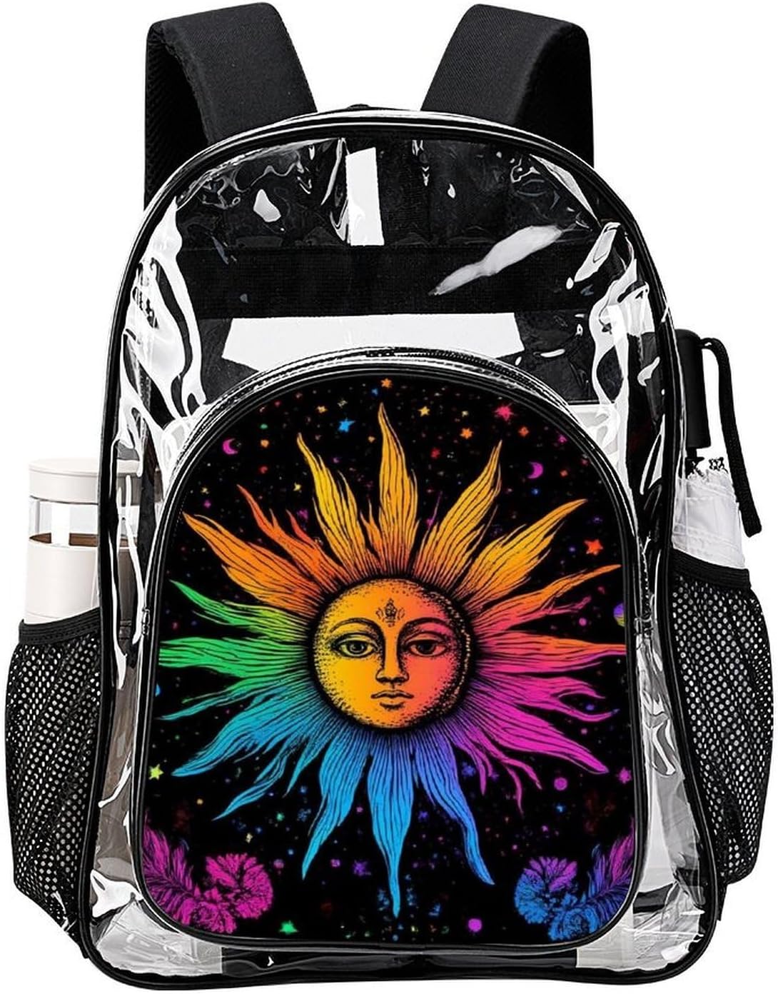 Clear Backpack Trippy Sun And Moon Neon Art (2) Heavy Duty PVC Transparent Backpack Travel Laptop Backpacks Large Bookbag See Through Bag