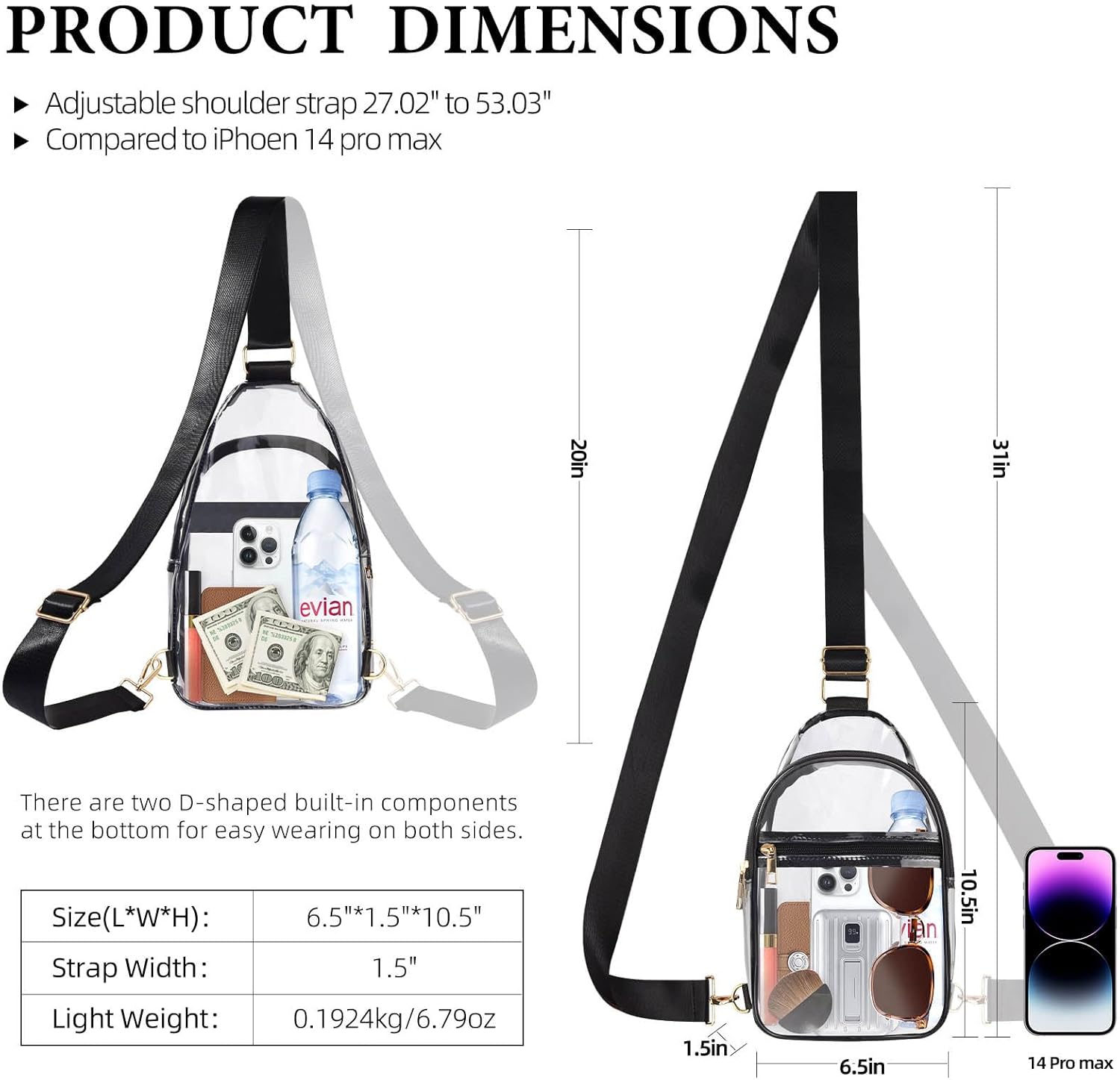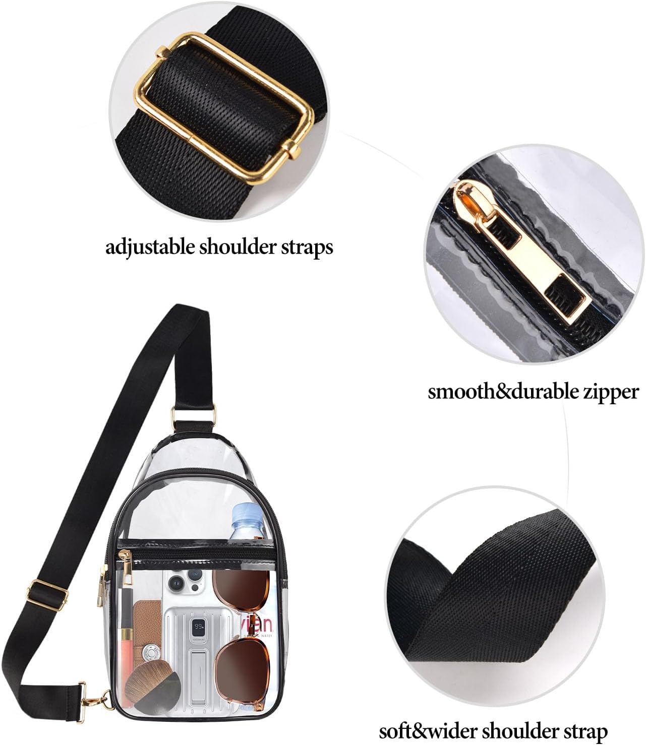 Clear Bag Stadium Approved, Clear Sling Bag with Adjustable Strap for Women Men, Concerts Sports, Events
