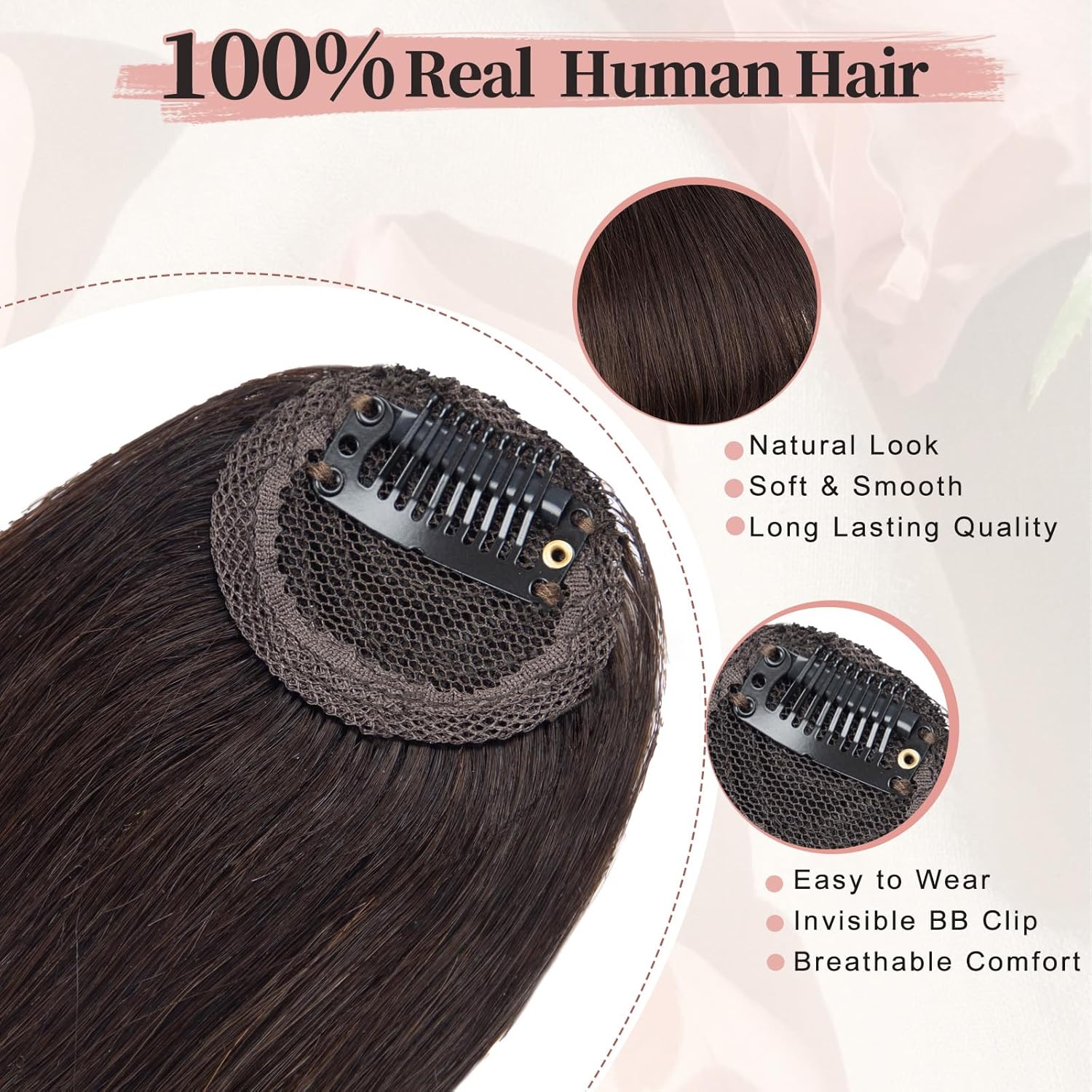 100% HUMAN HAIR CLIP IN BANGS: Made from 100% human hair, fake bangs feature a natural matte finish, authentic texture, and provide a soft, smooth touch. Lean in, and you’ll notice the keratin scent that only real human hair has. Wear them with no weight, plenty of breathability, and stay comfortable all day long.