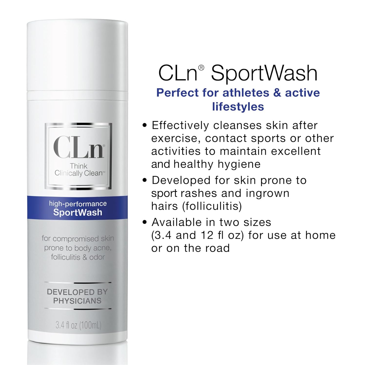 CLn® SportWash – High-Performance Sport Body Wash, For Men & Women Prone to Body Odor, Foot Odor, Ringworm, Folliculitis, & Back Acne, Fragrance-Free & Paraben-Free, 3.4 fl. oz.