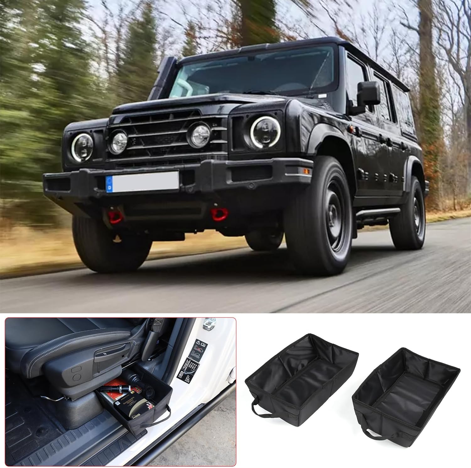 Compatible with Ineos Grenadier 2020-2024 Under Seat Storage Tray, Oxford Cloth Driver Passenger Underseat Hidden Organizer Tool Box Organizer with Anti-slip and Handle (2PCS, Black)