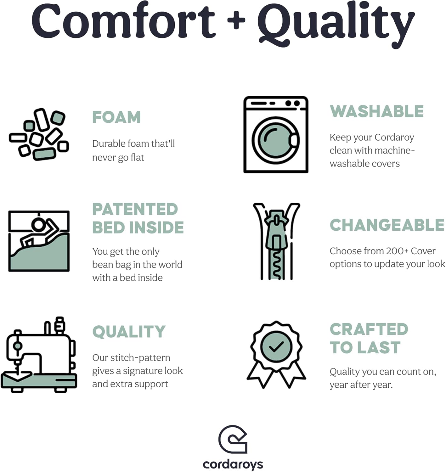 Convertible Bean Bag & Mattress: Experience versatility with CordaRoy’s convertible bean bag chair, transforming from plush seating to a bed for your living room, bedroom, or dorm