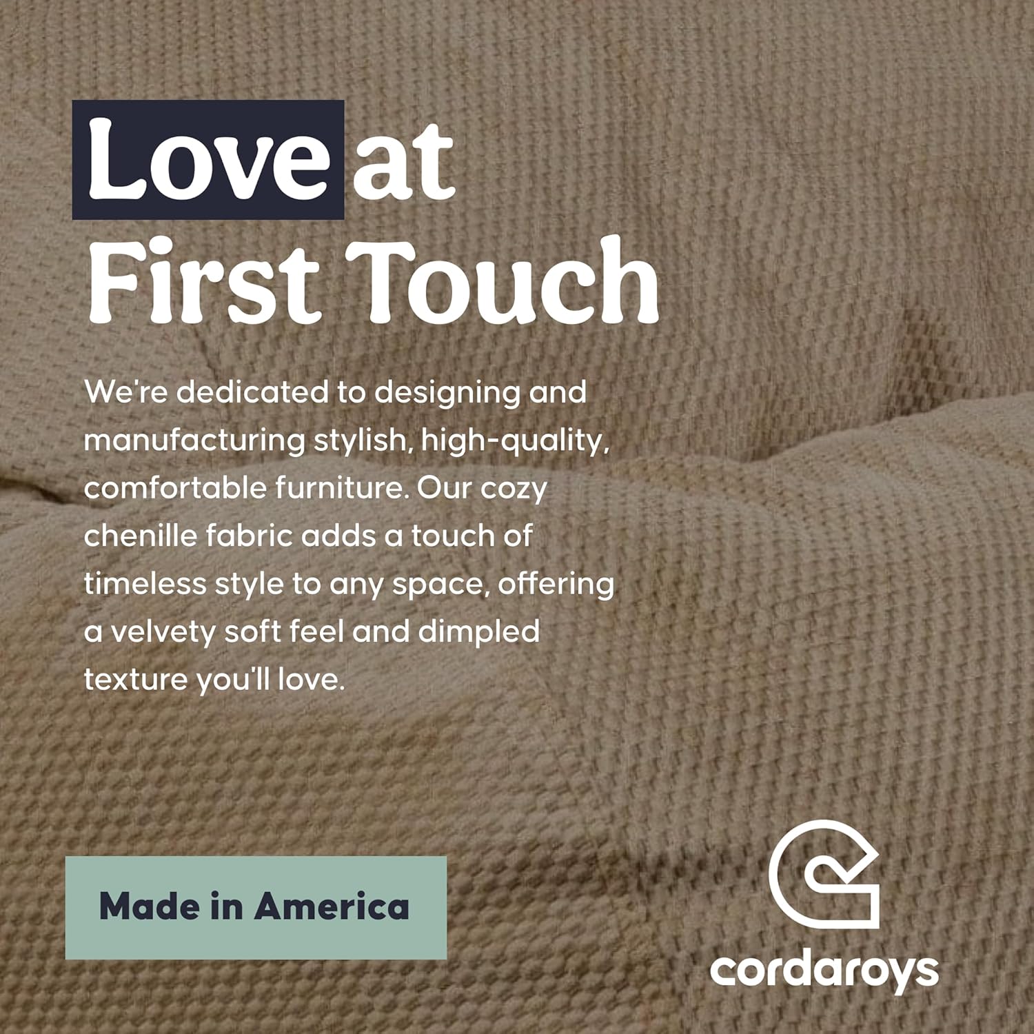 CordaRoy’s Chenille Bean Bag-Convertible Bean Bag Chair-Machine-Washable Chenille Fabric Cover-for Basement,Living Room,Game Room,Dorm & More – King Size – Tan | Made in The USA