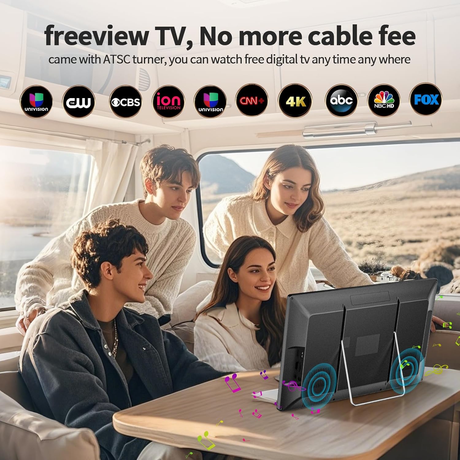 ATSC Digital Tuner & Enhanced Signal:Watch free local channels (ABC, CBS, NBC, Fox) with included high-gain antenna; ideal for RVs, road trips, and emergency news updates.