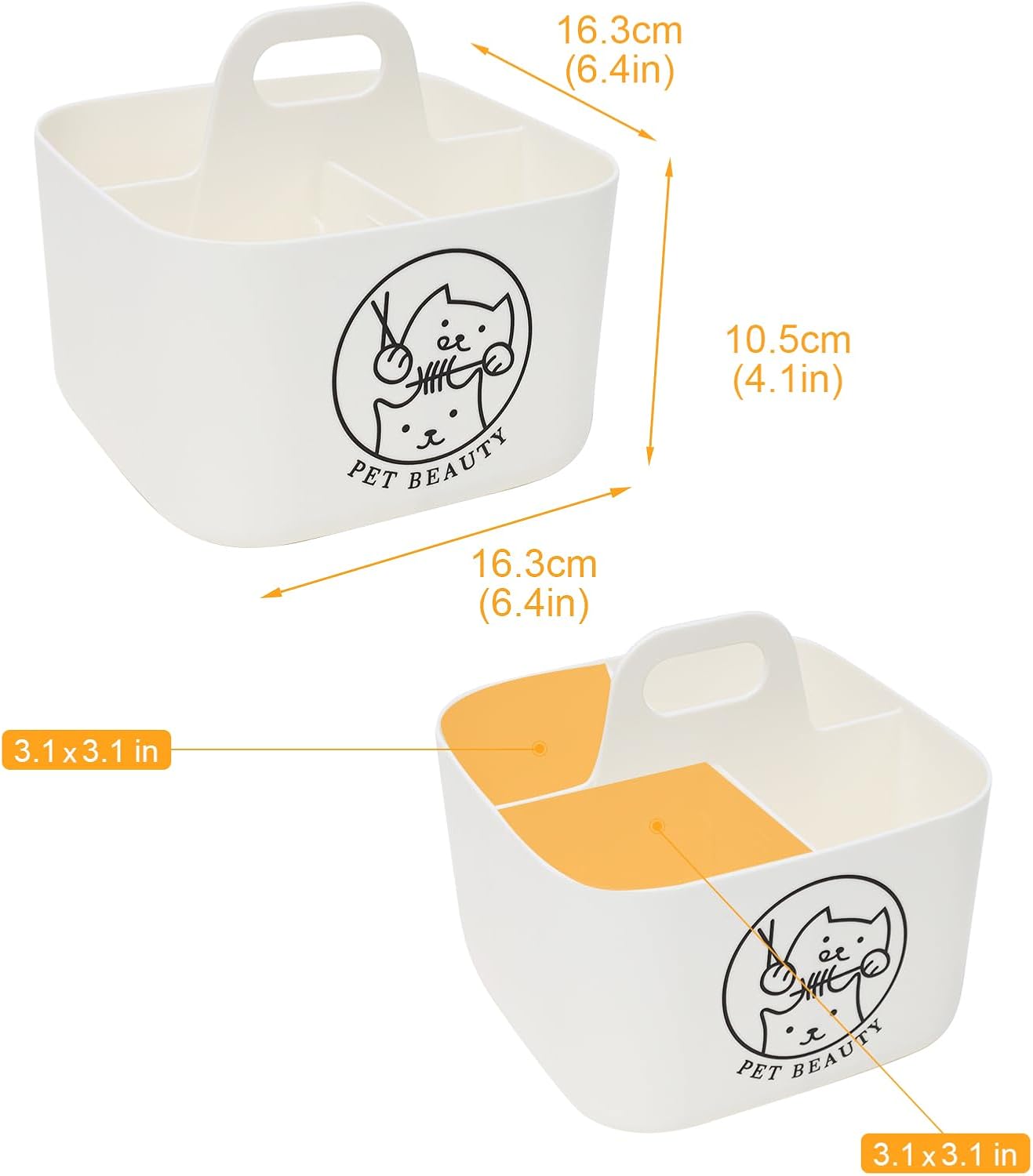 Spacious & Organized: Measures 6.5″ L x 6.5″ W x 4.4″ H . Features 4 compartments to neatly store grooming tools like brushes, trimmers, nail clippers, wipes, and more. Round corners and pass-through handles add convenience.