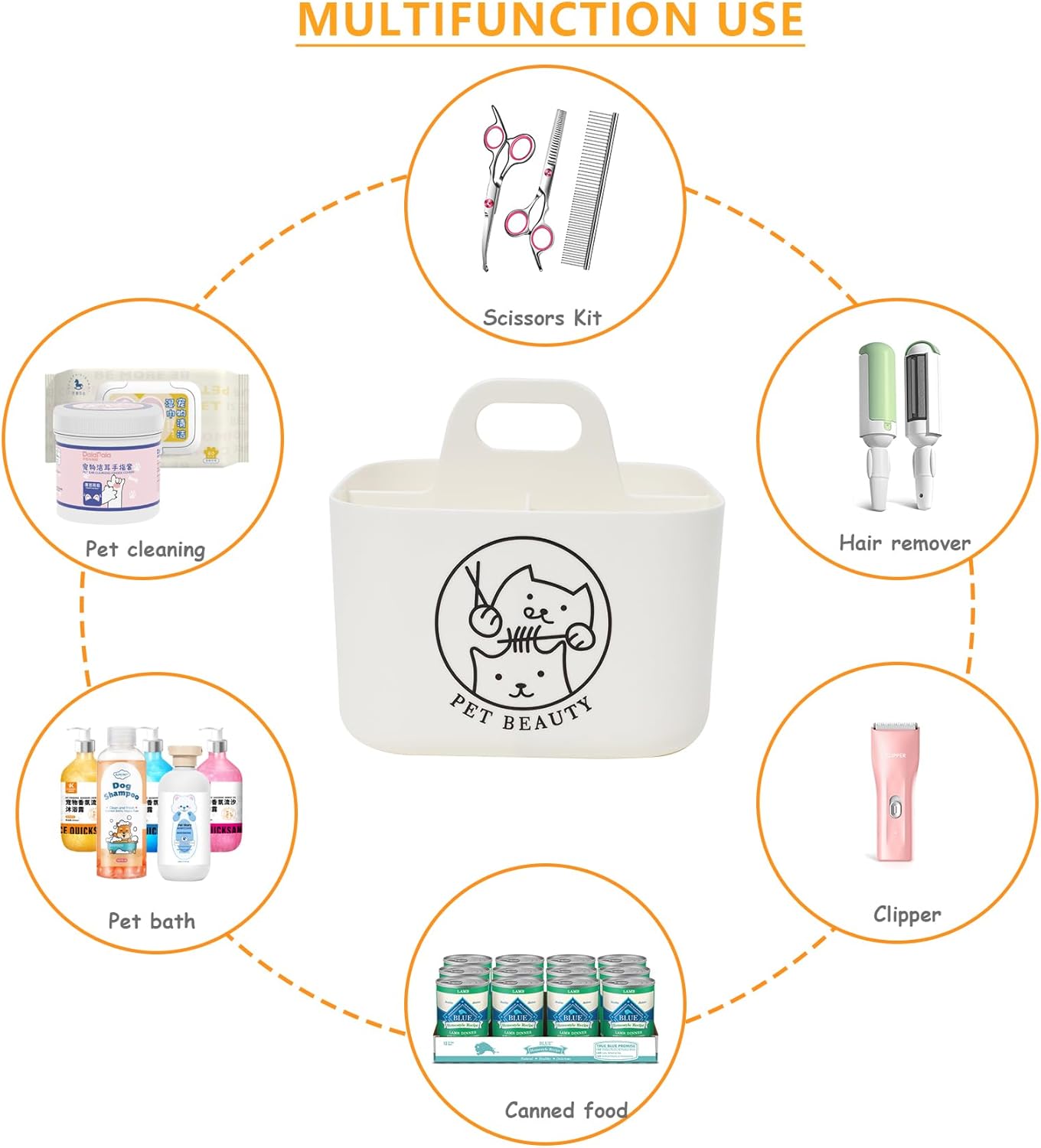 Dog Storage Organizer for Grooming Supplies,4-Compartment Caddy for Dog Cat Grooming Kit,Pet Stuff Storage,Ieal for Shampoo,Trimmer,Clipper,Combo,Brush-Modern Minimalist White