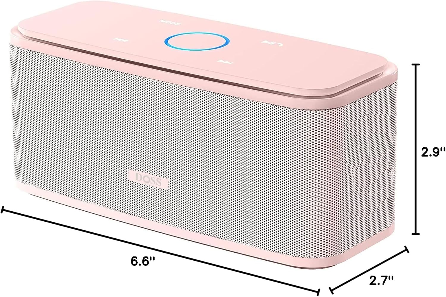 DOSS SoundBox Touch Wireless Bluetooth Speaker with 12W HD Sound and Bass, IPX5 Water-Resistant, 20H Playtime, Handsfree, Portable for Office, Home, Outdoor, Travel- Light Pink
