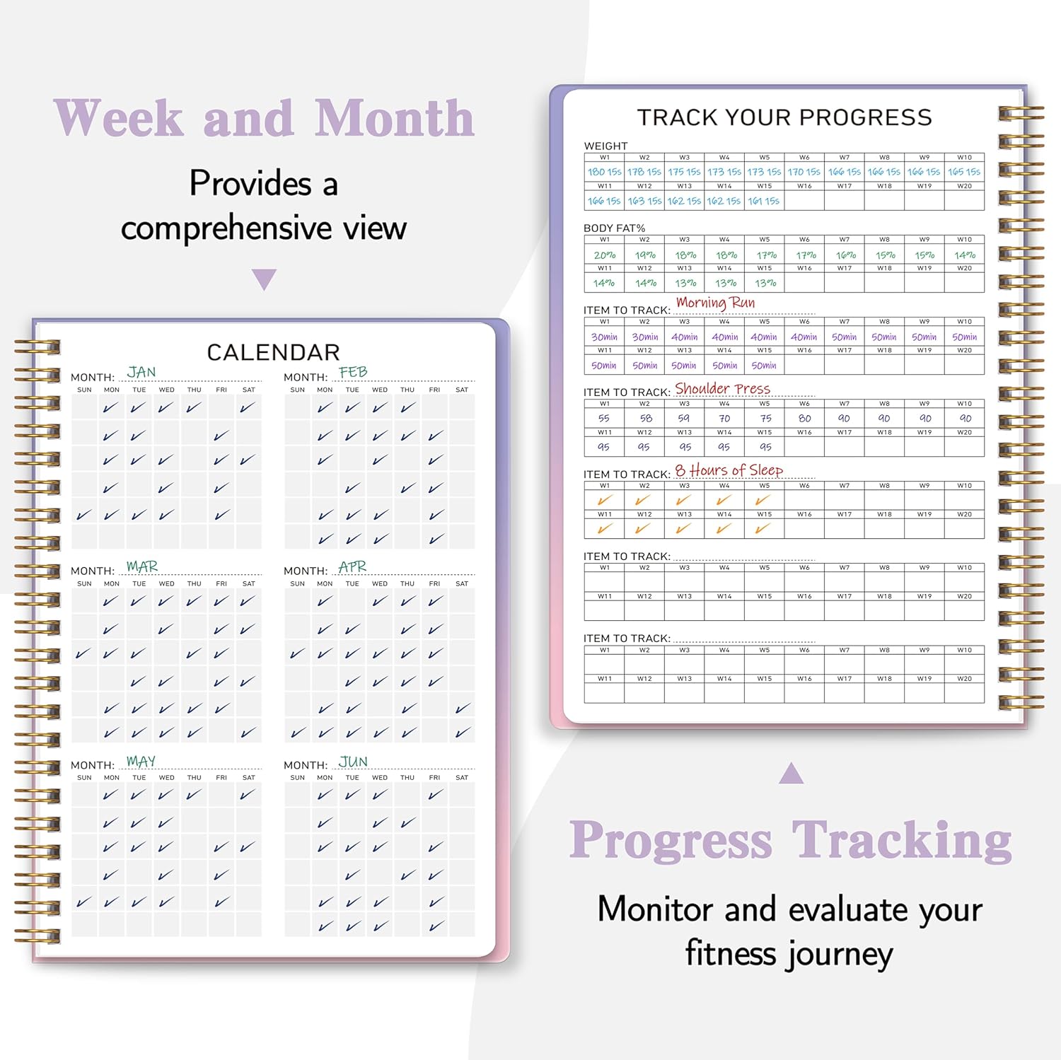This fitness tracking journal has two pages of goals that allow you to log your goals, track your performance, and keep you motivated and focused on your fitness journey.