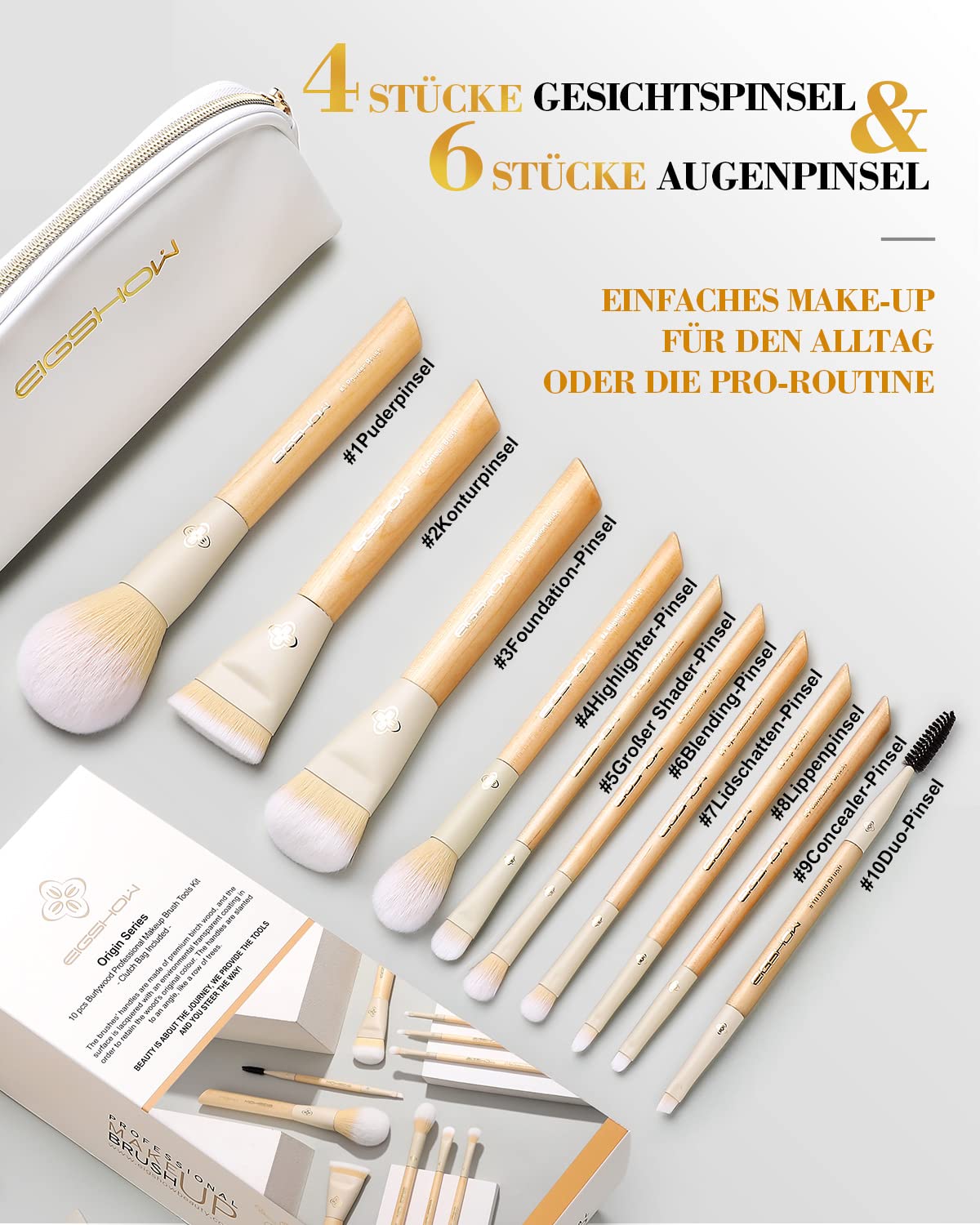 EIGSHOW Makeup Brushes Set, 10PCS Professional Makeup Brushes Kit with Corn Silk Fiber Vegan Brushes for Foundation Powder Concealers Eye Shadows Liquid Kabuki Brushes