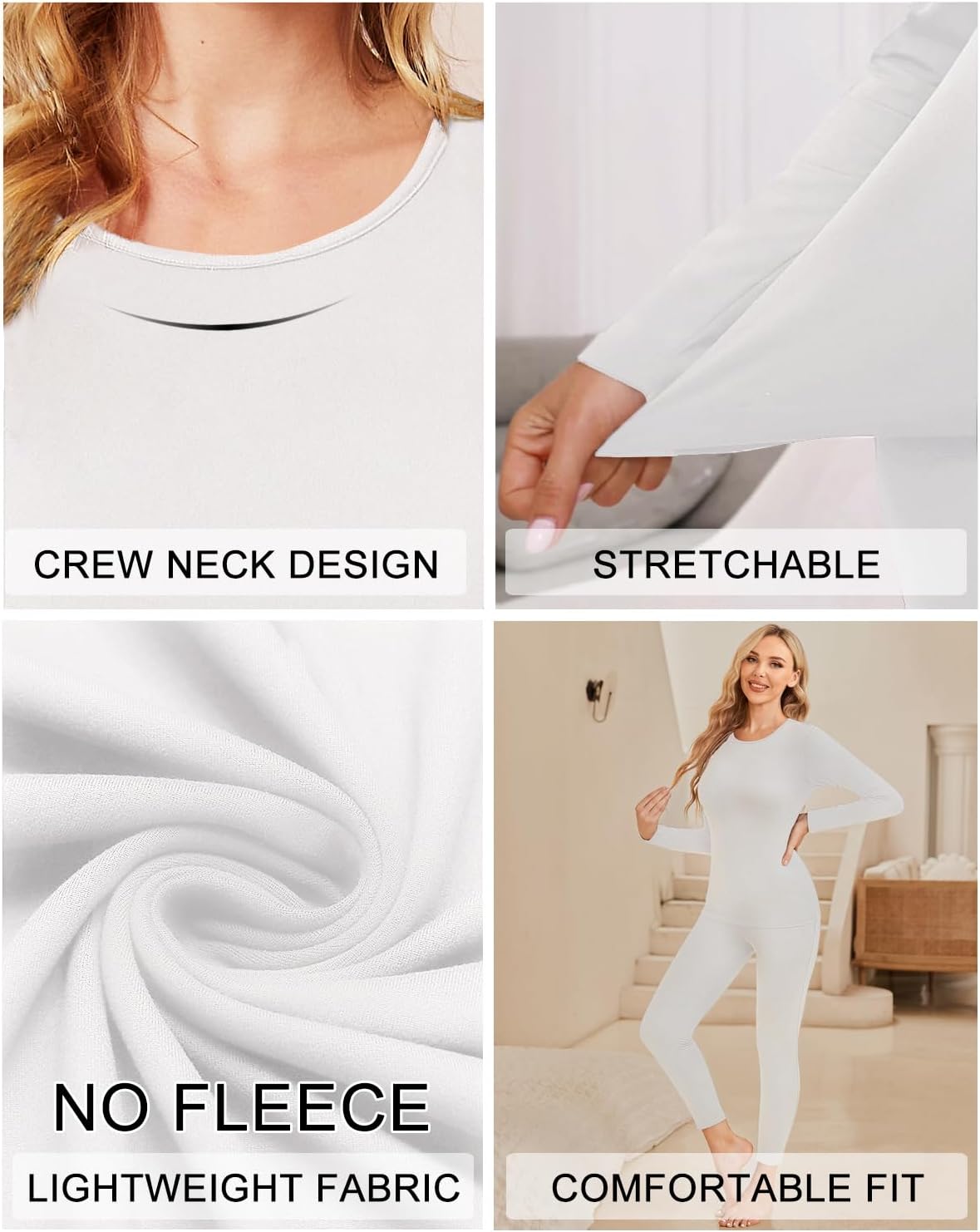 Ekouaer Thermal Underwear for Women Long Johns Sets Base Layer Lightweight 2 Pieces Pajams Set