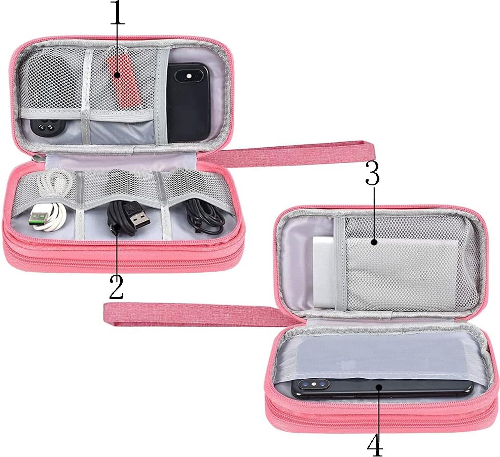Electronics Accessories Case, Universal Electronics Accessories Organizer Pouch Bag, Waterproof Portable Cable Organizer Bag, Travel Gear Carry Bag for Cord, Charger, Flash Drive, Phone,SD Card,Pink