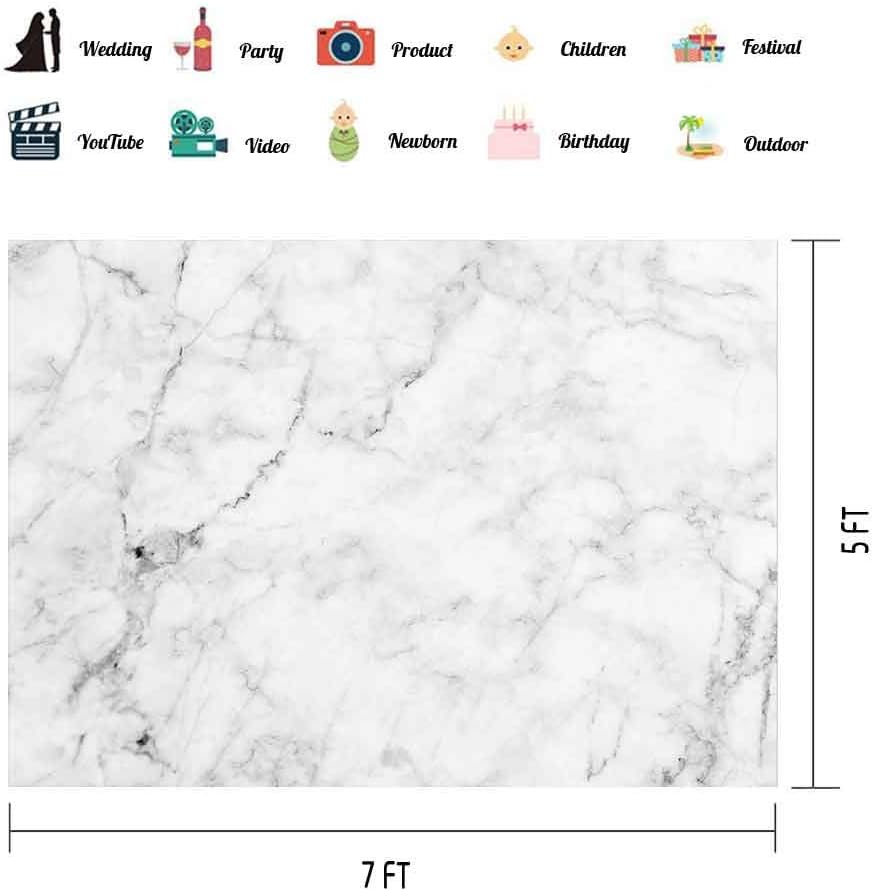 EOA 7(W) x5(H) FT Marble Texture Backdrop White Gray Marble Nature Stone Color Photography Background Food Jewelry Cosmetics Makeup Photographer Professional Photo Shoot Studio Prop