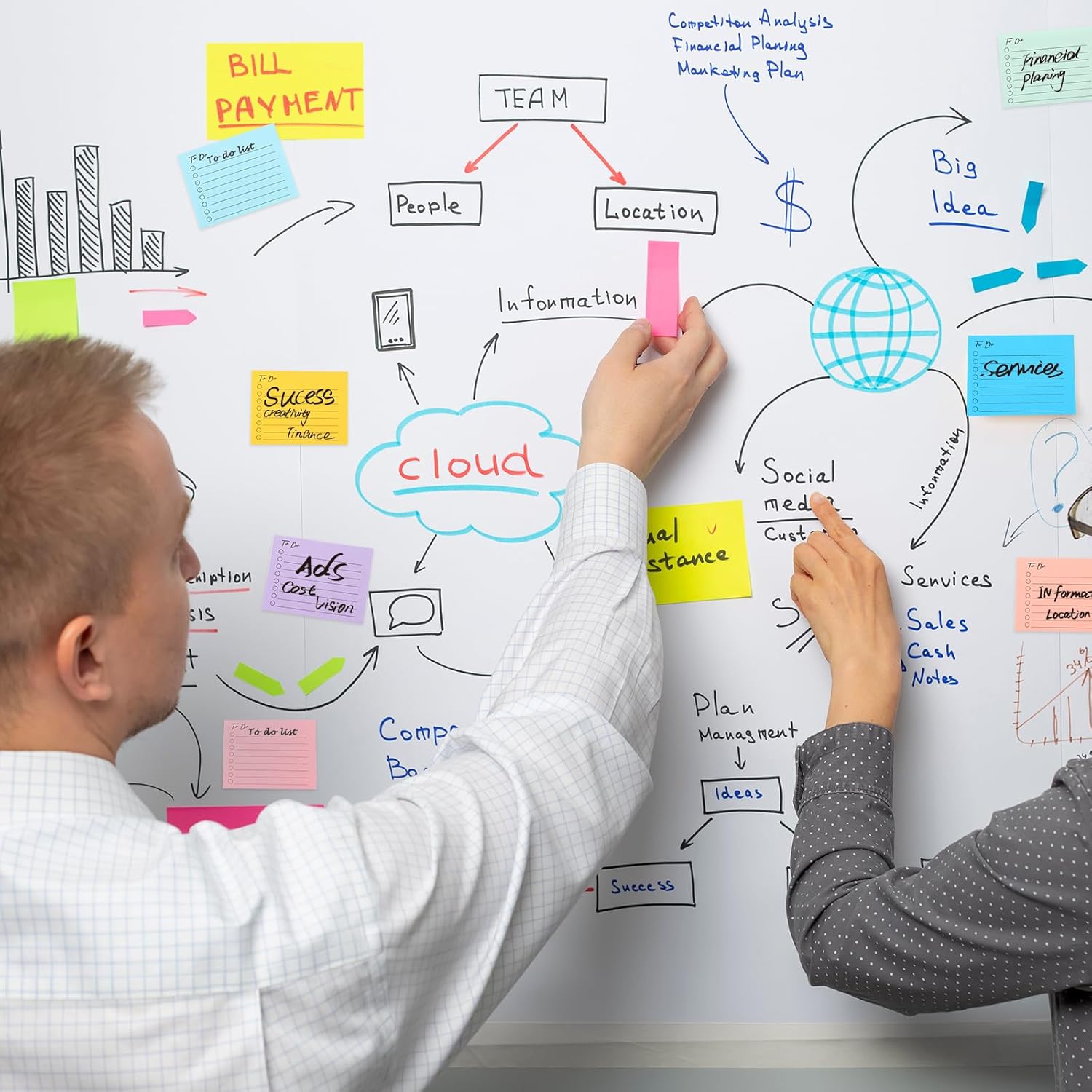Quality Paper and Super Sticky: Our large sticky note is not easy to fall off, and does not leave any residue, can be reused. The hard paper will not tear apart, curl up, or spill ink.