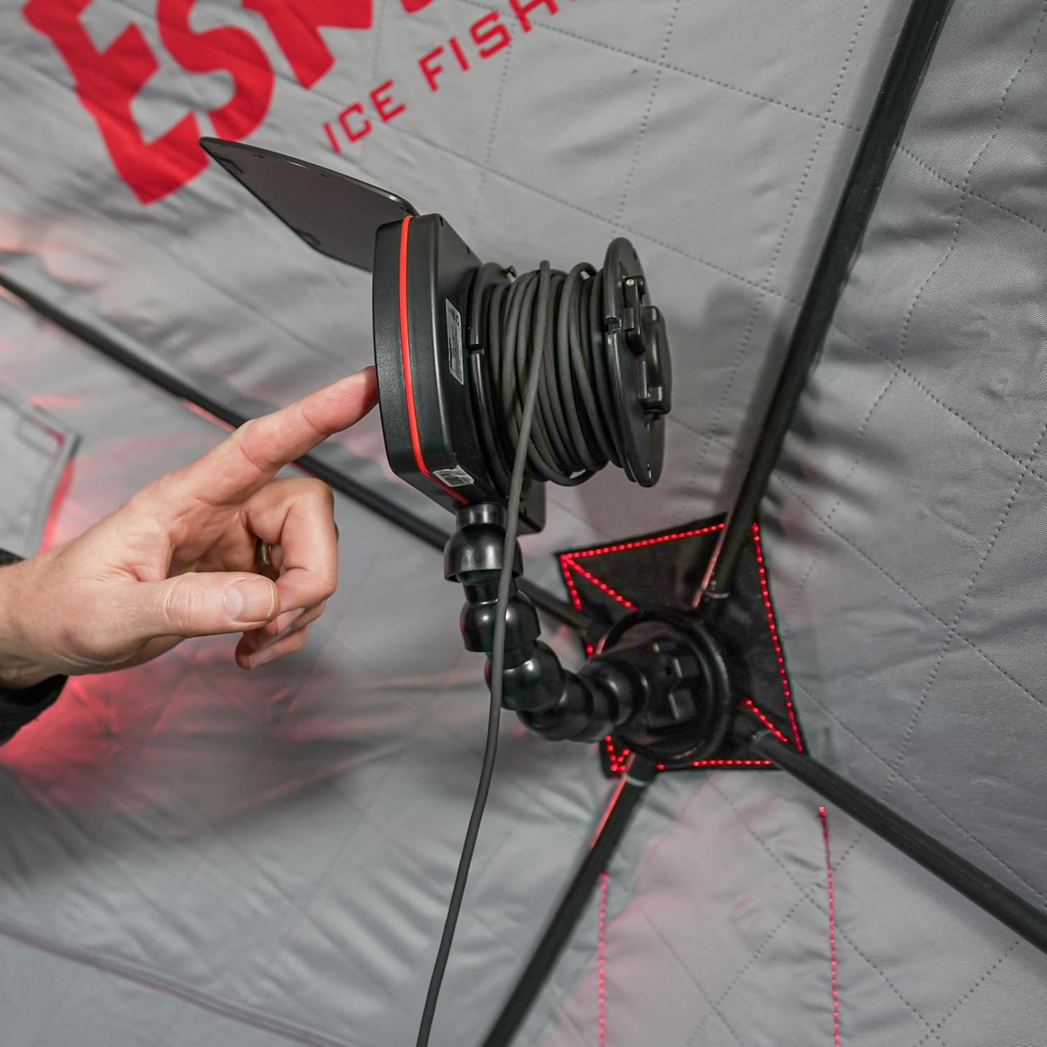 PERMANENTLY MOUNTABLE BASE – Allows secure attachment into all Eskimo pop-up hub shelters.