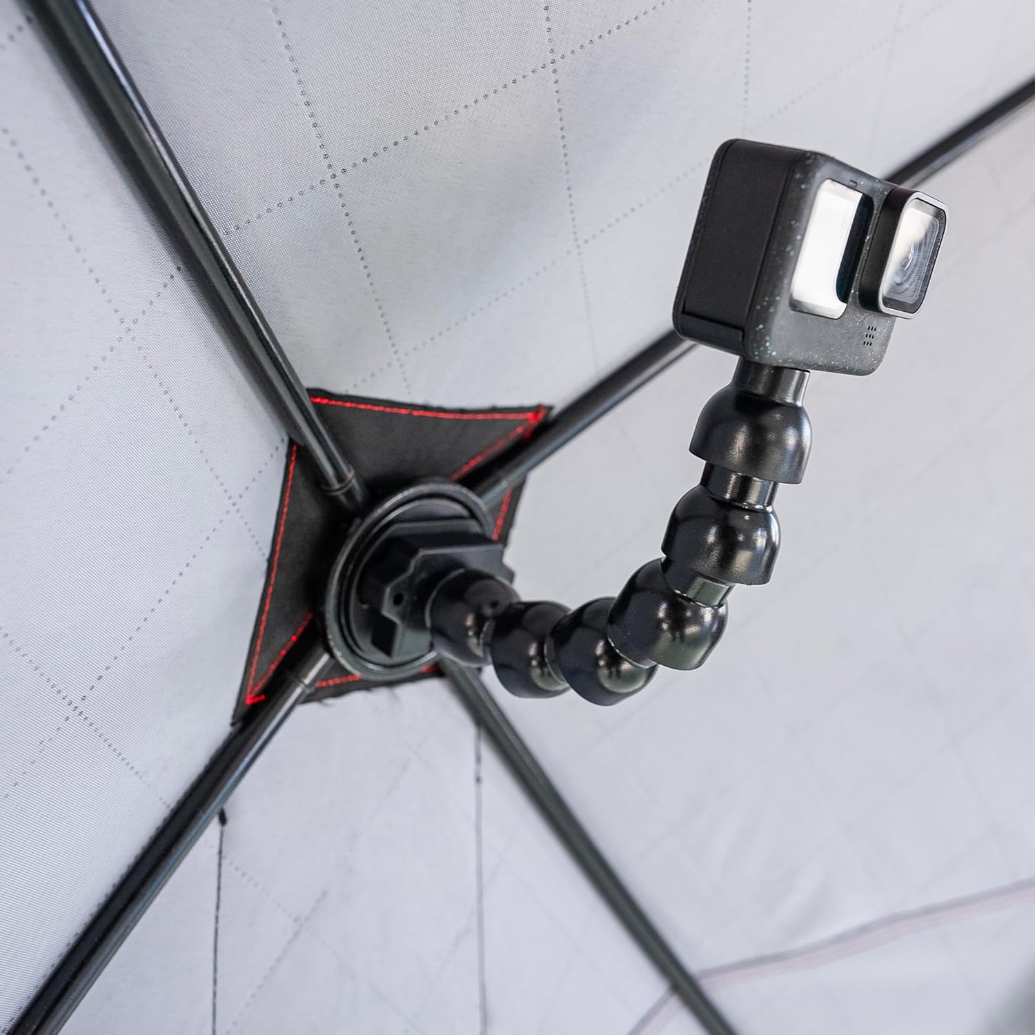 A flexible, versatile arm to mount and hold what you need, where you need it. The unique E-Hub™ attachment mechanism utilizes existing bolts/nuts on shelter hubs, so no additional installation hardware is necessary. The locking clip allows the base to hold this reinforced nylon E-Hub Camera Mount at any angle, allowing it to be flexed in any direction.