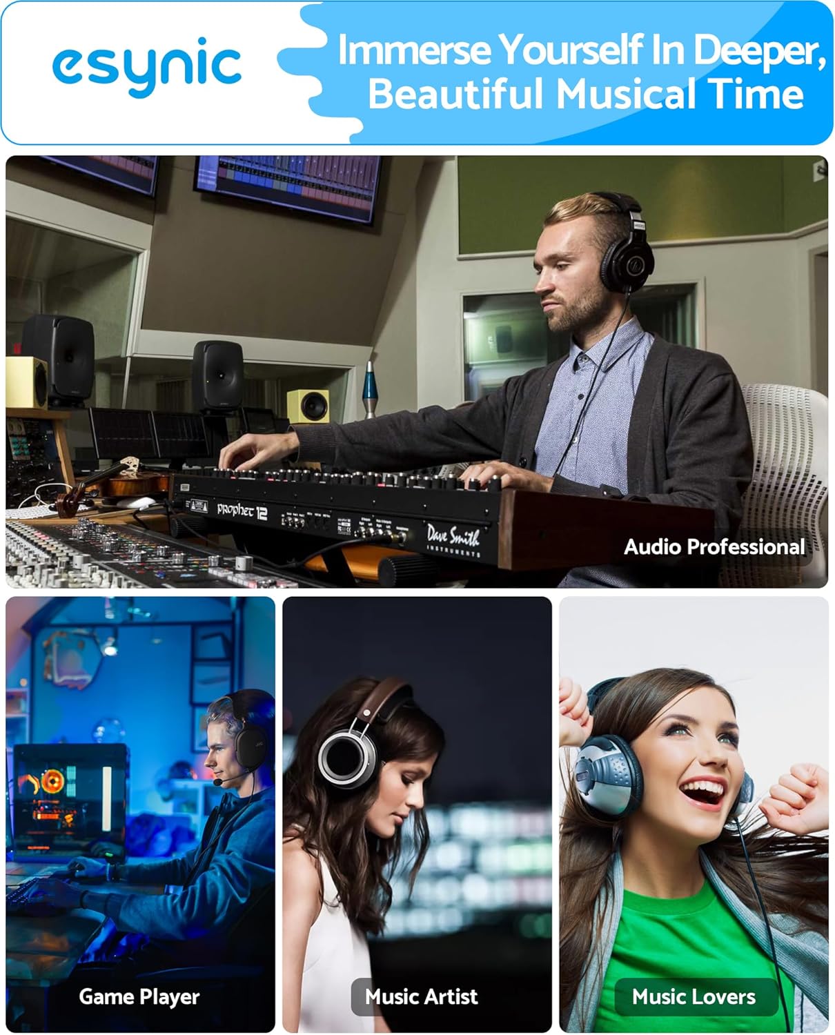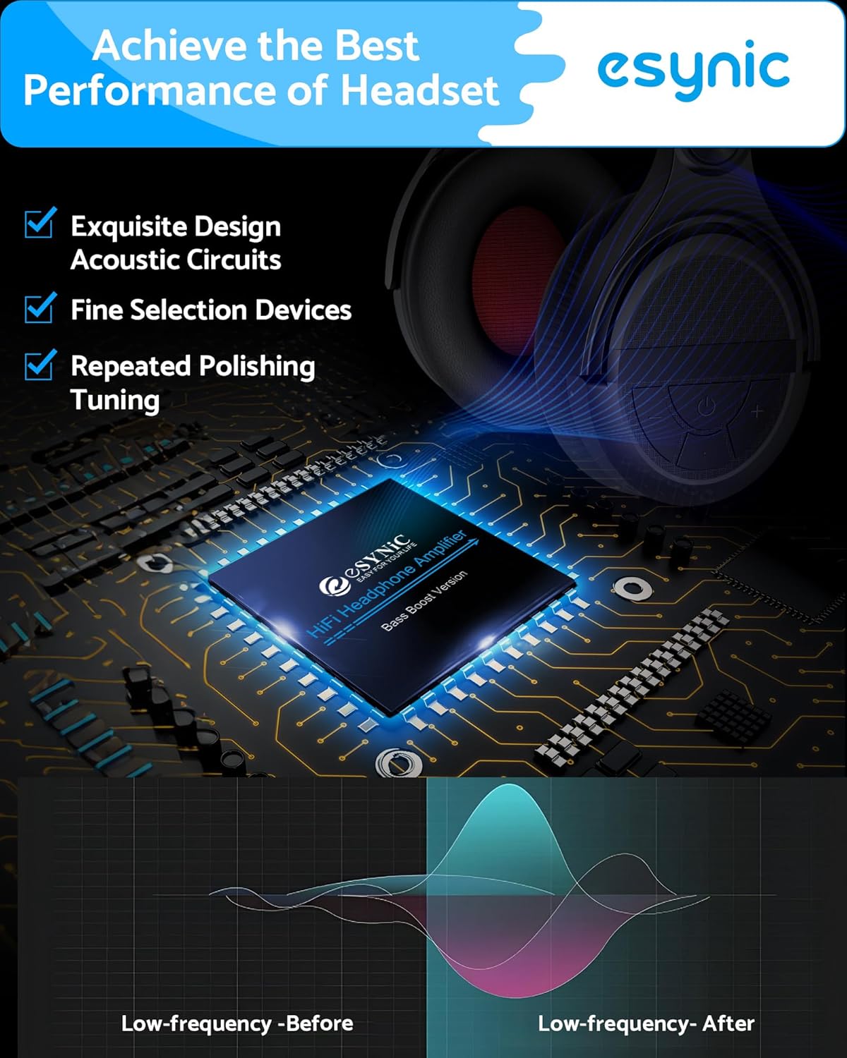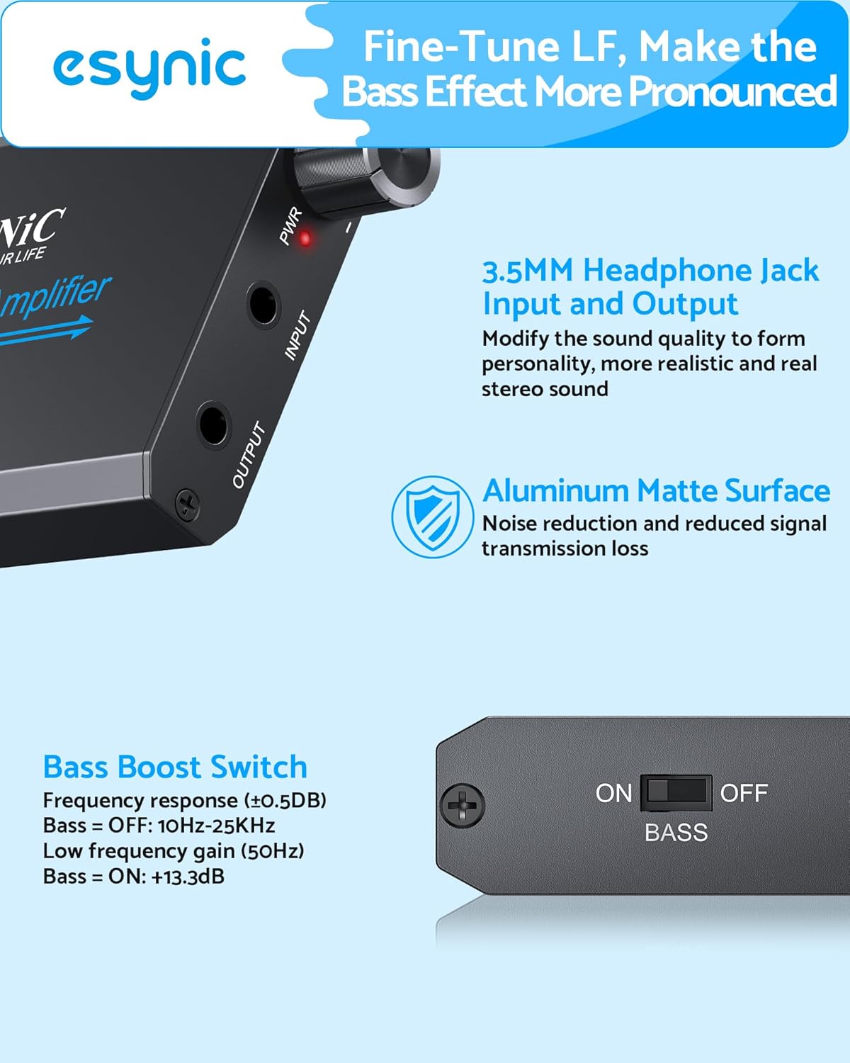 *🔊【+13.3dB Bass Boost – Studio-Grade Low Frequency Enhancement】*—:Our eSynic Professional Bass Headphone AMP Precisely amplifies 50Hz range by +13.3dB while maintaining midrange clarity. Perfect for EDM, hip-hop and cinematic content – hear every kick drum and synth bassline with visceral impact.