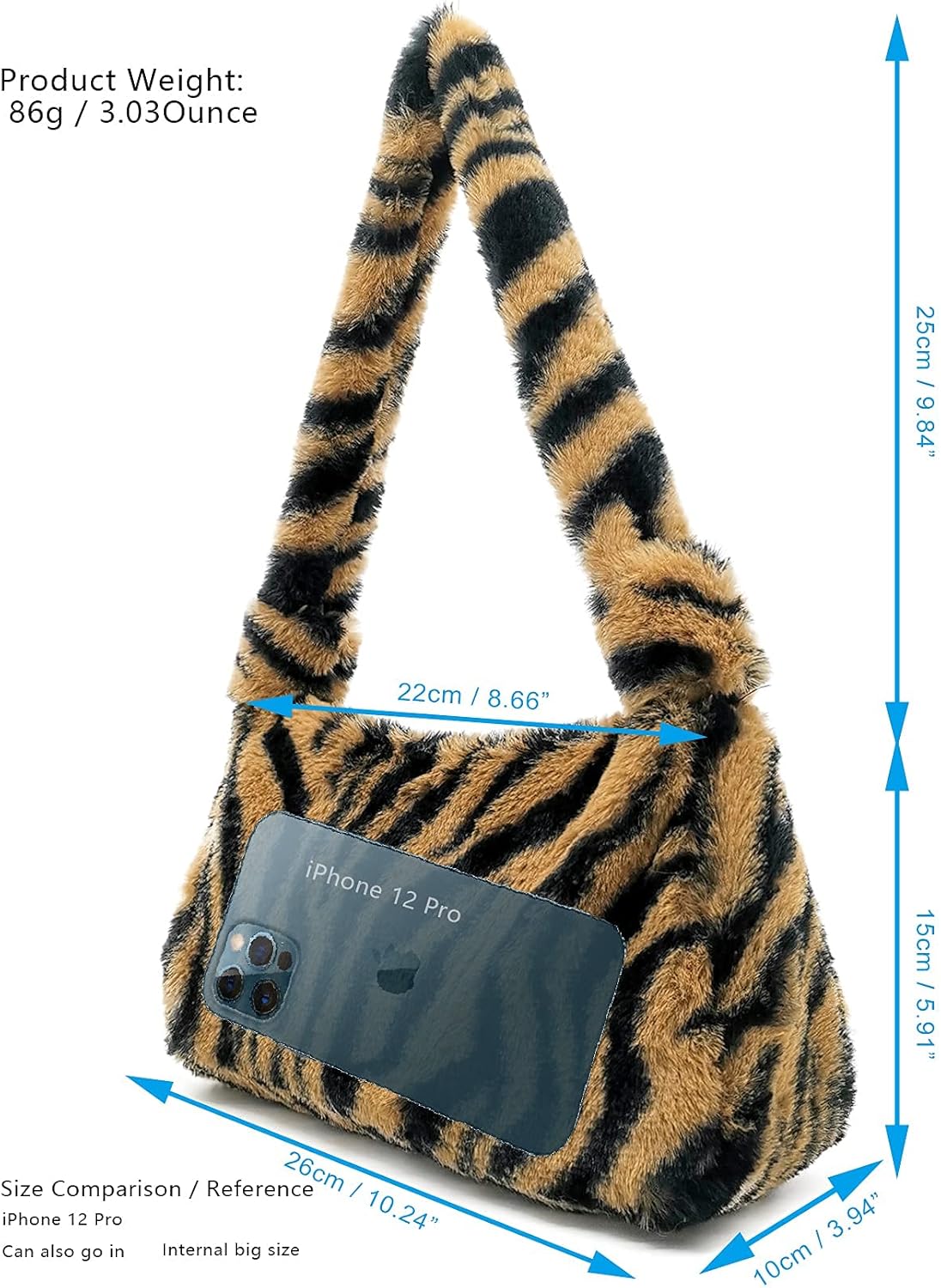 Product Name: Crossbody bags for women Faux Fur Tote Purse with Zipper Plush Handbag Fur Purse