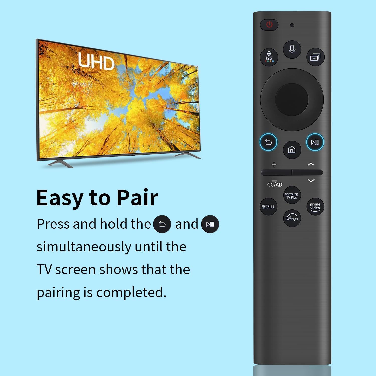 【Easy to Pair】 Easy pairing the BN59-01385A remote, Press and hold the Back/Exit and Play/Pause buttons at the same time for 5-8 seconds and you will see the message “Pairing complete” in your TV screen. (If pairing fails, please repeat this step)