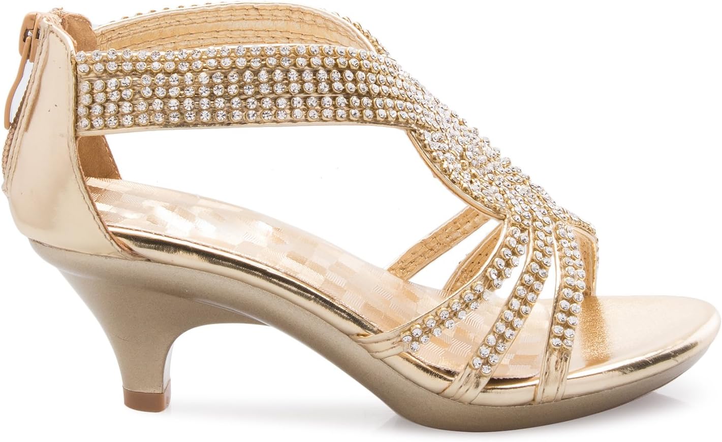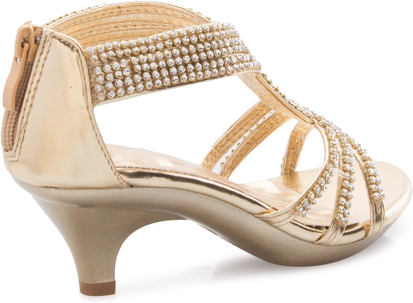 Girls’ Kids Open Toe Strappy Rhinestone Dress Sandal Low Heel Shoes – Wedding, Dress, Dance, Flower Girl