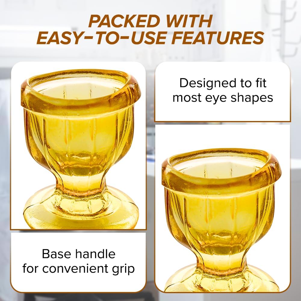 Glass Eye Wash Cups 1pcs | Eye Cleaner Solution For Tired Eyes, Eyestrain, Makeup and Dust | Eye Shaped Rim For Eye Rinse and Cleansing – Yellow