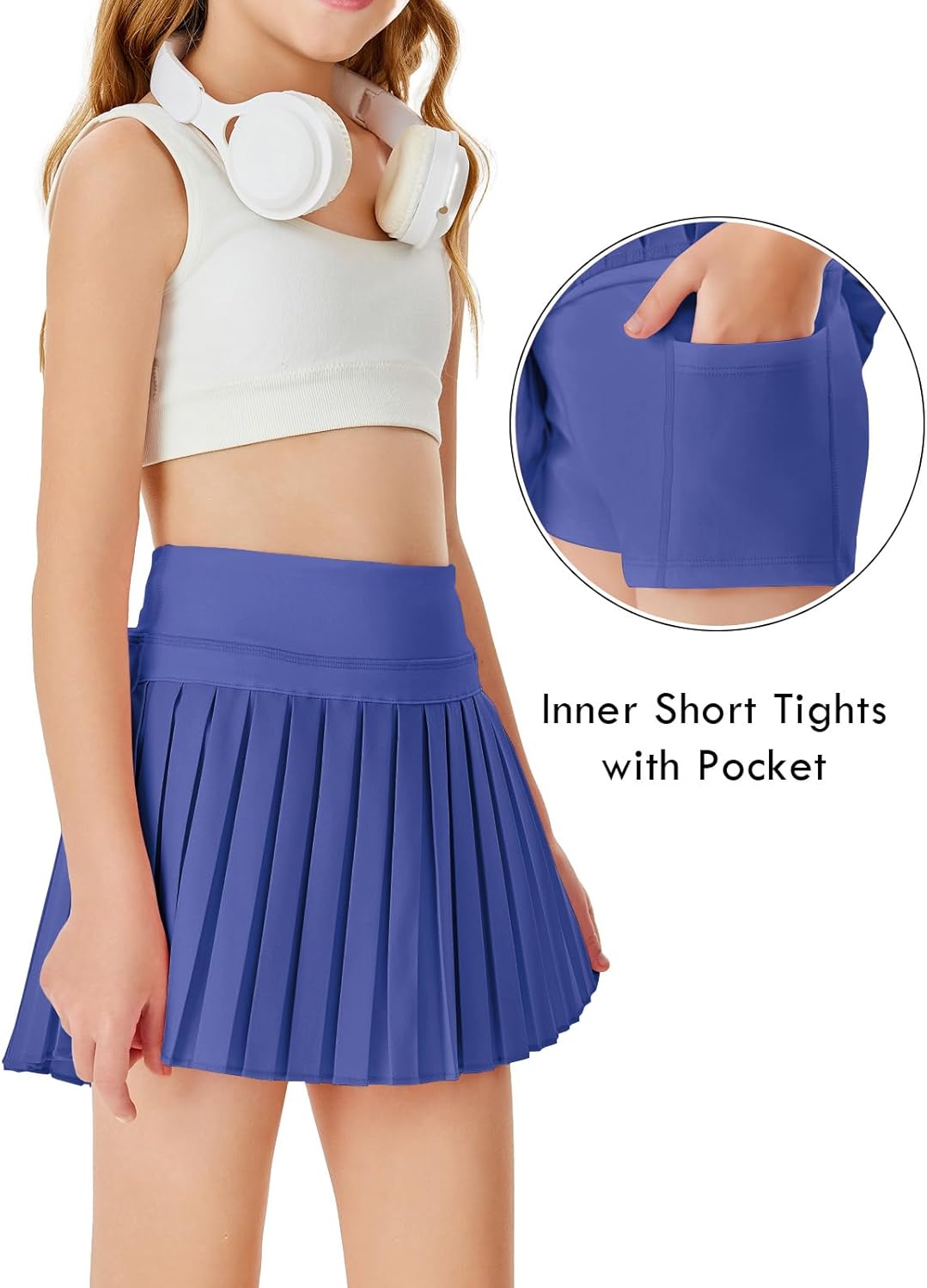 Haloumoning Girls Pleated Skirts with Shorts Athletic Tennis Skorts Sport Performance Skirt with Pockets 4-14 Years
