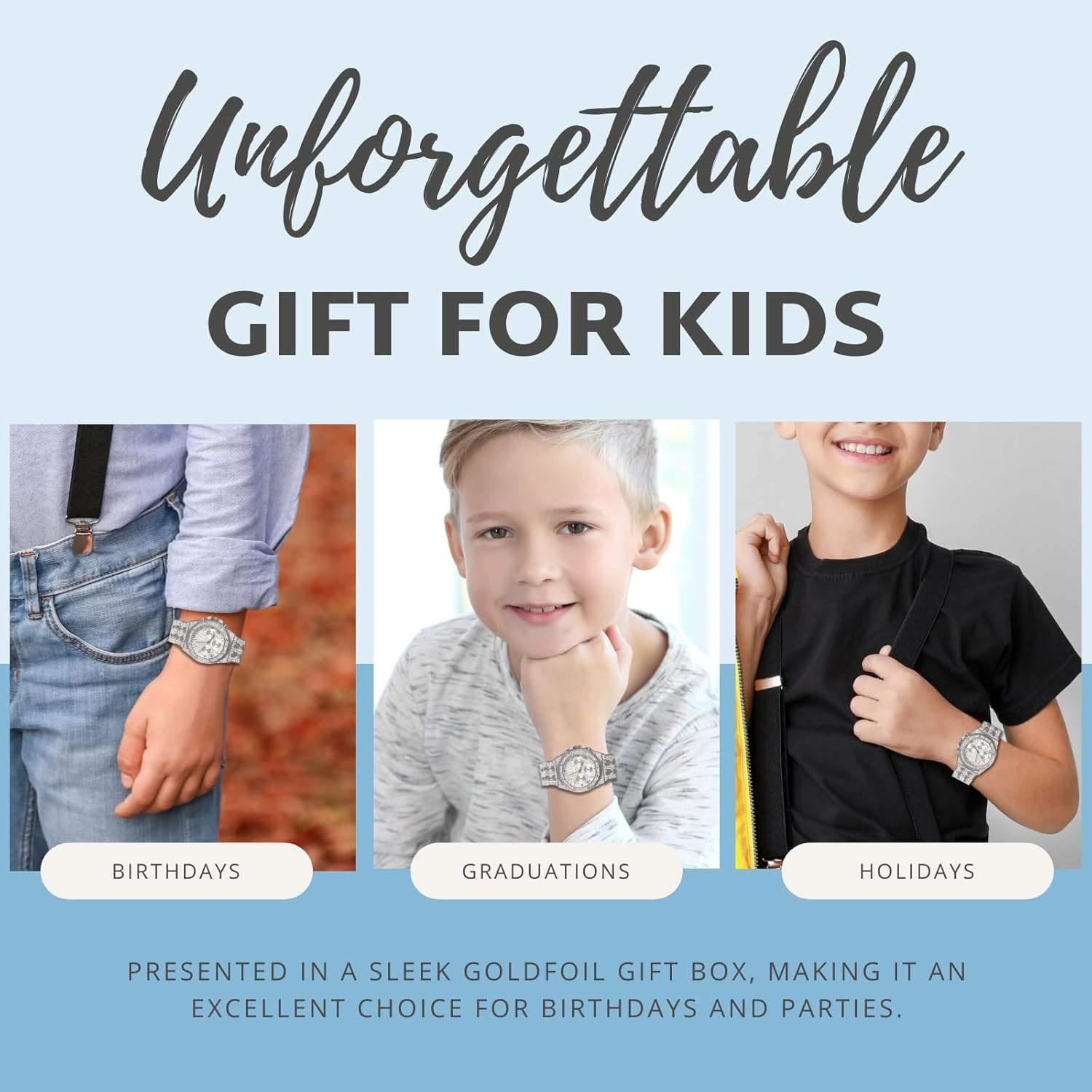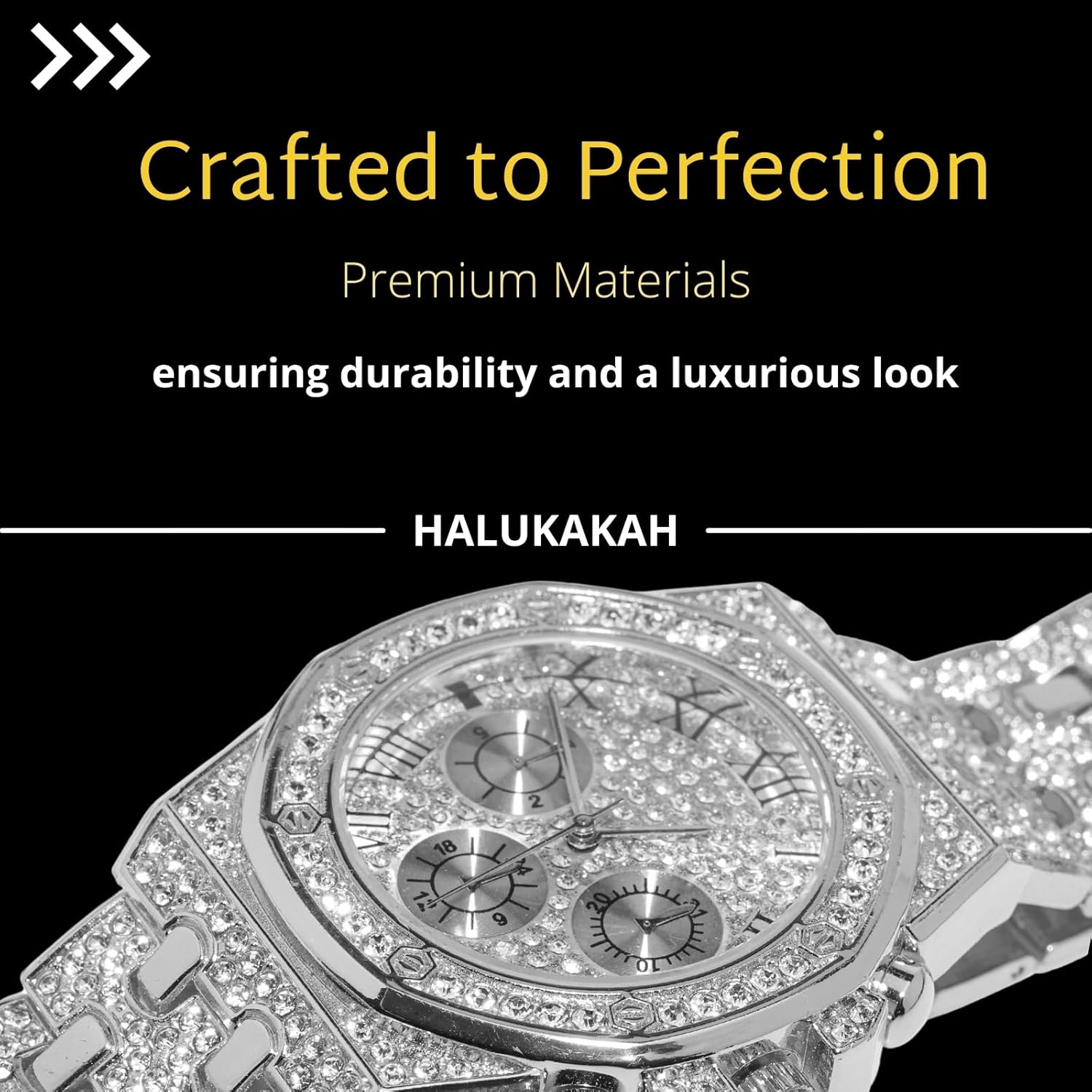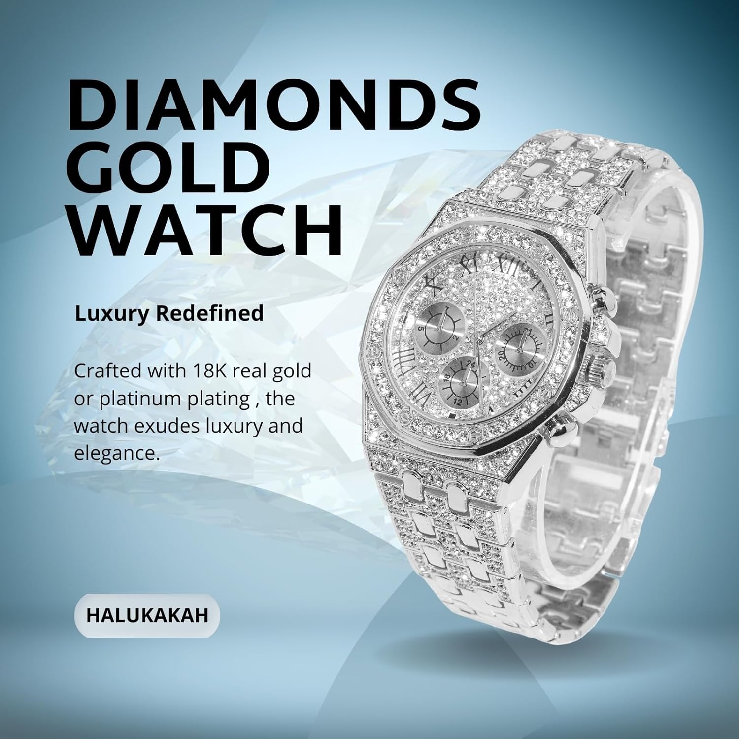 Halukakah Diamonds Gold Watch Iced Out for Boy Teens Kids – 18K Real Gold/Platinum Plated,40mm Roman Numerals Octagonal Dial,Japanese Quartz – 8″ Length,with Watch Adjuster Tool -for Birthday,Parties