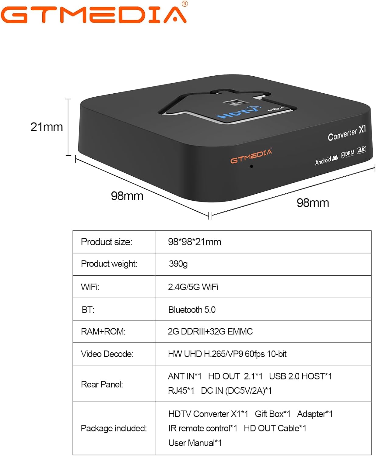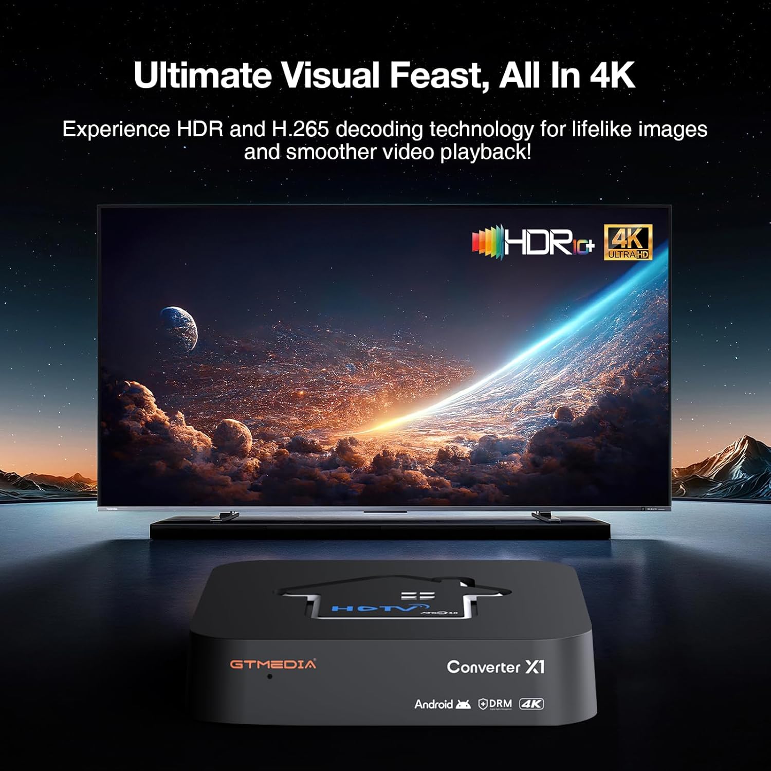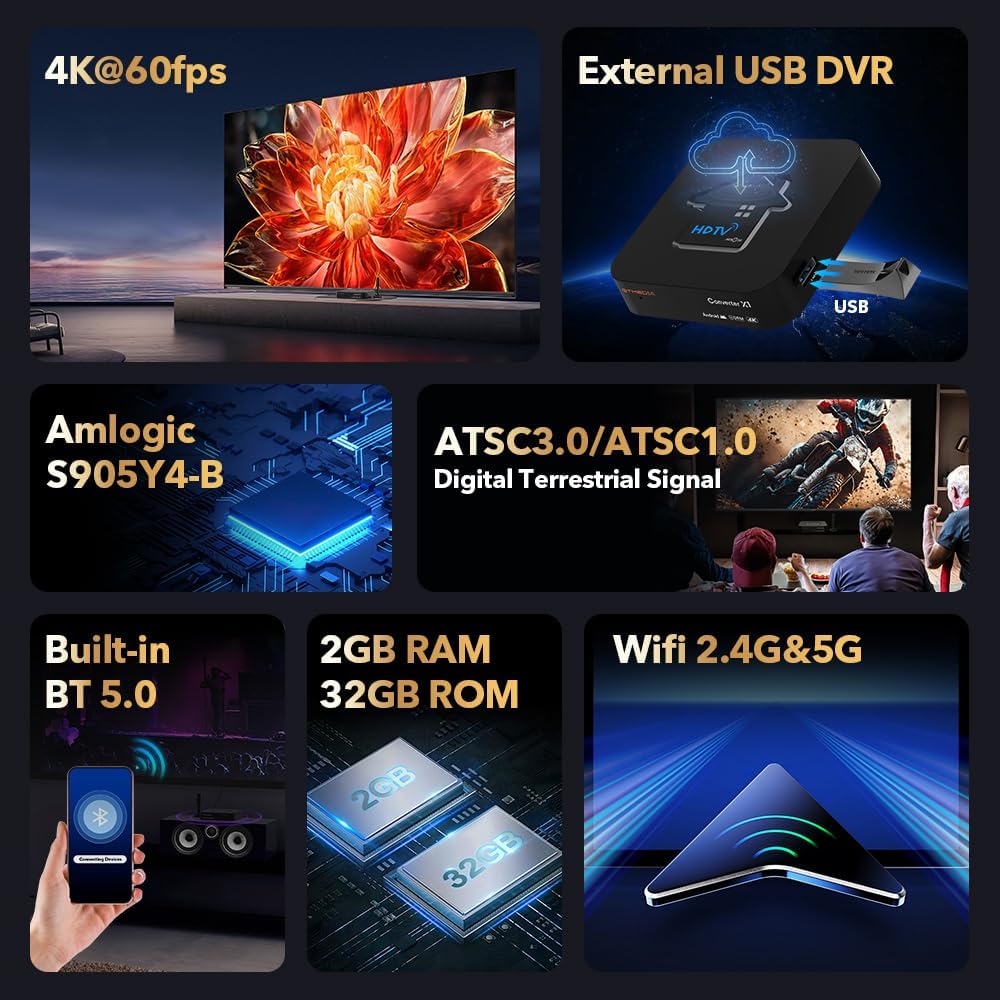 HDTV Converter X1 Box ,ATSC3.0 OTA Tuner 4K UHD + D0lby AC4,Support ATSC3.0 DRM Channel Play, Built-in WiFi & Bluetooth 5.0, DVR Recording and Channel Guide